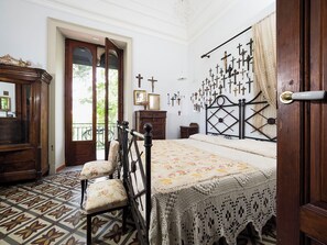 The second floor is the floor with the turrets. The turrets offer a charming stay with a marvellous 360 degrees view that includes the sea and Mount Etna. The panorama gets even more fascinating at nights with all the towns lights! You can access the two turrets from the terrace on the rooftop. The north tower has a double bedroom with en-suite bathroom. The south tower has a double bedroom that can be reached via a spiral staircase. This room does not have a bathroom.