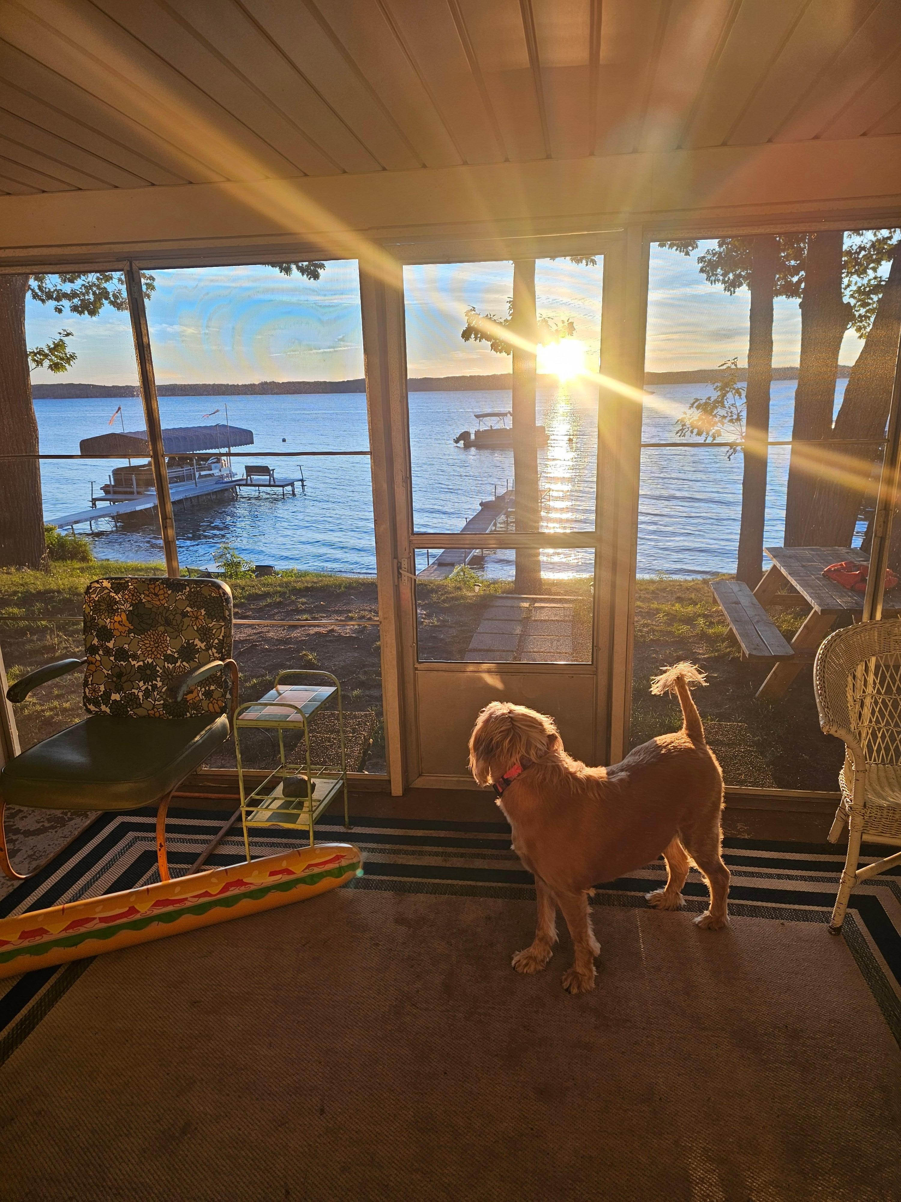 The place is in an excellent location and beautiful sunsets over lake, and close walking distance to a very small quaint town. Cottage is cute and has been updated in some places very nicely. As it does state it truly is "Grandfather's Cottage". The downside we felt were lack of privacy curtains in the bedrooms. There were very sheer white curtains that were completely see through. It would be very nice if actual privacy curtains or blinds there, so if you wanted to change in a bedroom or shut for some morning sleep in time, not have entire bedroom light at sunrise. The 2 small windows in living room would be nice to have a pull down blind option (there is nothing on these windows) to have privacy from close neighbors if you wanted. There were only two of us, so we hung some bed sheets in bedrooms & improvised with towels in the living room. Electrical outlets are very minimal and very outdated (thus to be expected with age of home). Tough if needing to work with a computer or electronic devices in certain spots/limited capacity. I give it an 8.5/10 for being clean (will admit, I probably have a little OCD on the cleaning scale). Great place if you want to be directly on lake and have the views, along with the BEST feature of being able to bring your fur babies along. Thanks for the adventure!