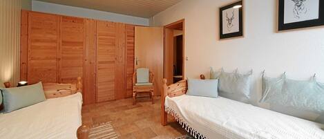 The centrally heated non-smoking single room was renovated in 2022 and is accessible via a separate entrance (stairs). There is a small seating area, fridge, kettle, capsule coffee machine, flat-screen TV and a bathroom with shower/WC. There is ample parking, bicycle storage, a playground with information board about the national park, a cot on request and free WiFi.