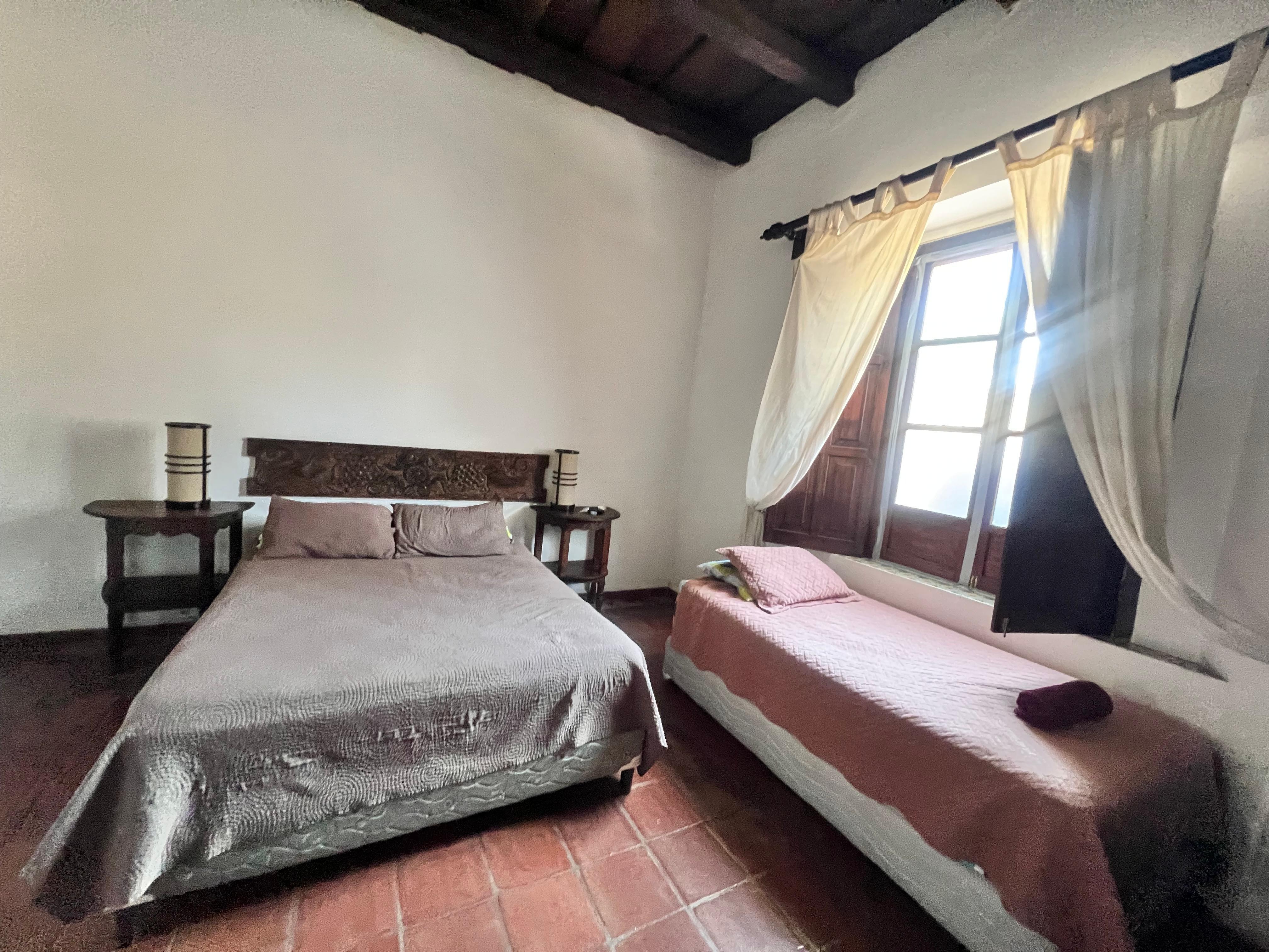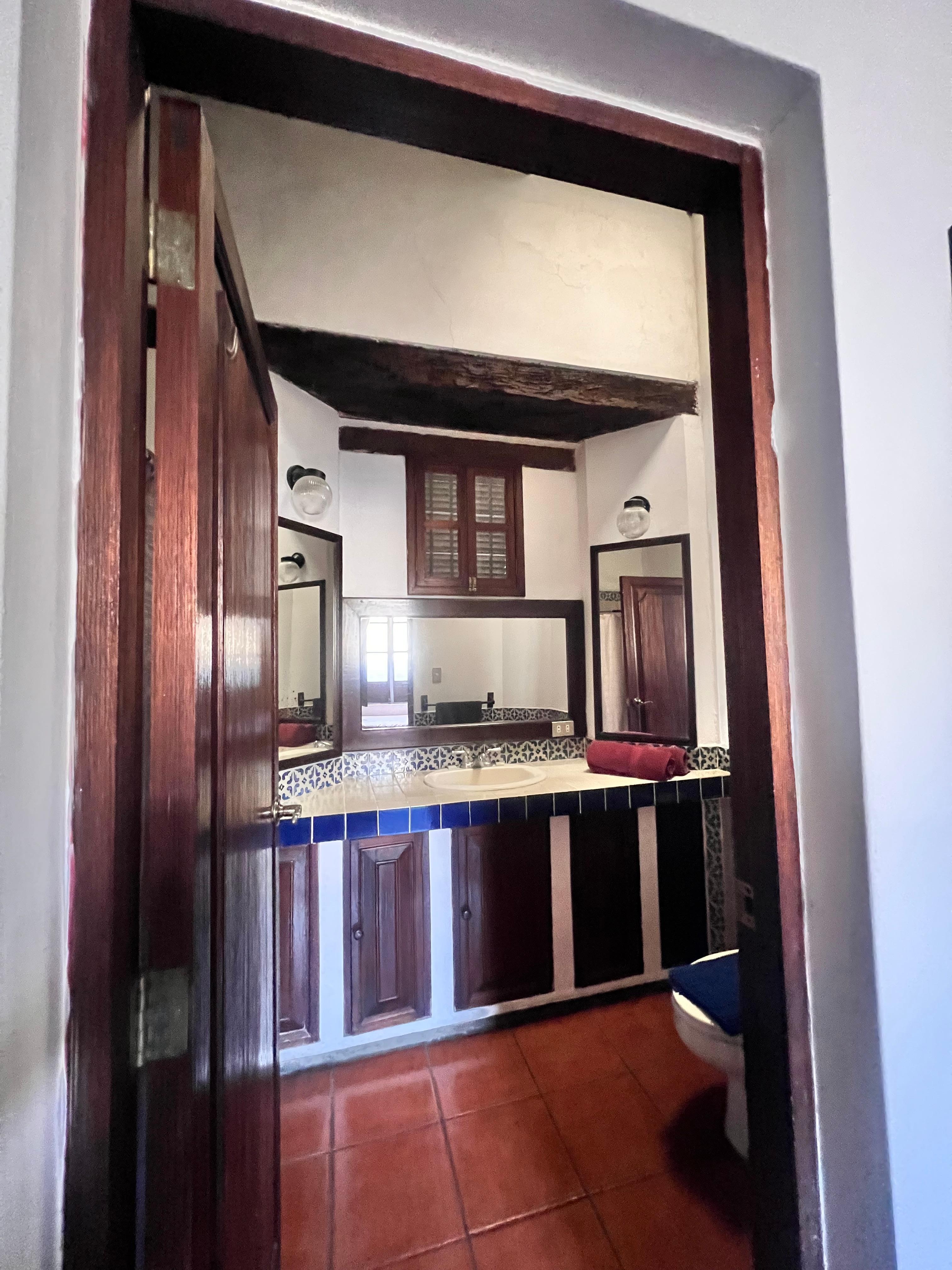 Casita del Escritor's bedroom features a queen bed and work space as well as a TV with cable and strong wifi. A twin bed can be added for a third guest. With a fireplace, the apartment’s living room offers the perfect place to spend your evenings. The apartment has a fully equipped kitchen where you can prepare any meal and enjoy in the dining room. The apartment’s full bathroom has hot water and a stand-in shower. The apartment is decorated in colonial style and windows fill the space with natural light. As this property is street-facing, there is the potential for noise from the surrounding areas.