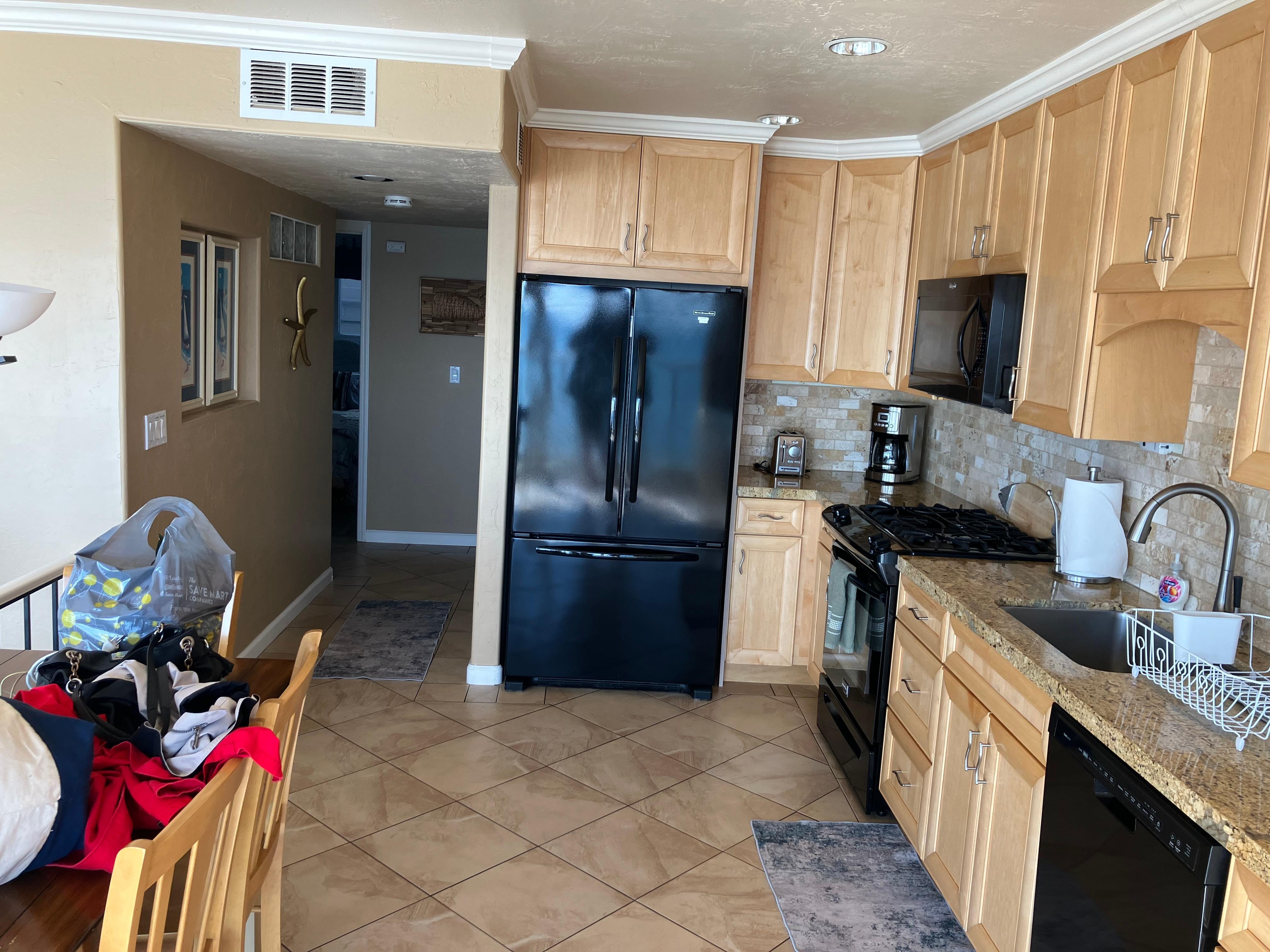 Fridge, microwave, oven, stovetop