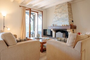 This domain has a large living room with two sofas and a television available. The dining room is equipped with a large dining table and a sideboard. The fully equipped kitchen is open to the dining room. You will find an oven, induction hobs, a fridge/freezer, a kettle, a filter and capsule coffee maker, a dishwasher and all necessary utensils.
