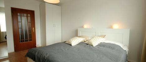 Your maritime furnished 2-room apartment 23RB14 has a size of approx. 40 sqm and is furnished for 4 people. It is located on the 1st Upper floor and has a beautiful south-facing balcony. The bright living room is followed by the white eat-in kitchen and the balcony. In the separate bedroom you will find a double bed and a wardrobe. From the upstream hallway you can reach the spacious shower room with cosmetic mirror and hairdryer. In the living room there is a dining area and a cozy sitting area with a sleeping function as well as a flat screen TV, a music system with CD player and internet connection. The kitchen has an oven, microwave, refrigerator, dishwasher, coffee machine, toaster and kettle. A private parking space is in the immediate vicinity.