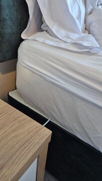 We were unable to get into the property on arrival, Vbro arranged alternative arrangements for the first night, when we did get in the interior was less then impressive, the only clean things was the towels, and the bedding, probably done by laundry service, but fitted sheet didn't fit the mattress and the clean white duvet covers were too small to cover the grey quilts, thick dust over several surfaces, balcony scattered with cigarette ends, we are non smokers. All 4 dining chairs loose legs, unsafe to sit on until we tightened up all screws, knobs missing on some cupboard doors and some door missing completely, big sign outside the front of the building saying new houses being developed on this site, could it be that the owners have just given up on any maintenance and cleaning