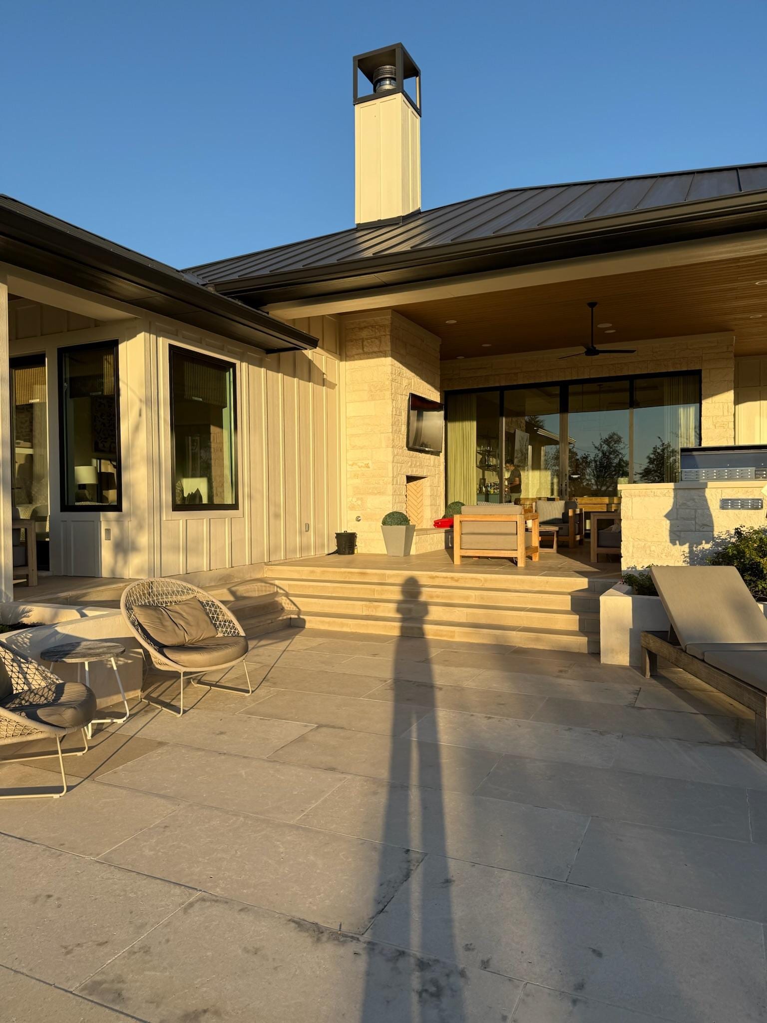 • Outdoor Living room with fireplace, 65" HD TV, seating for 24+