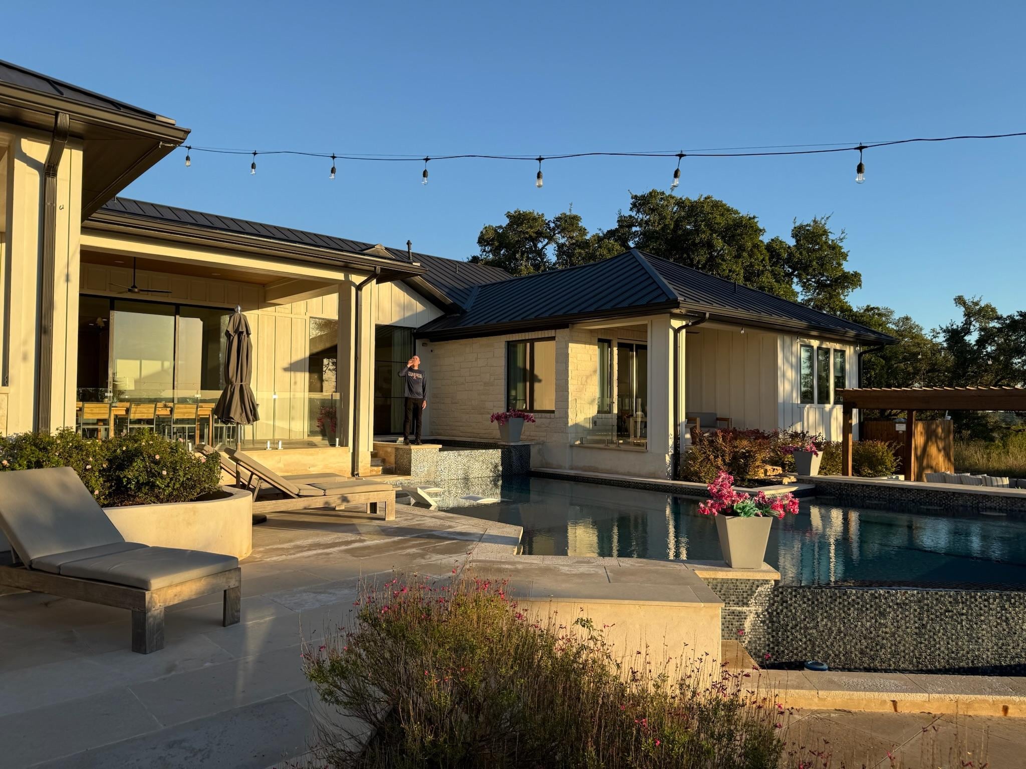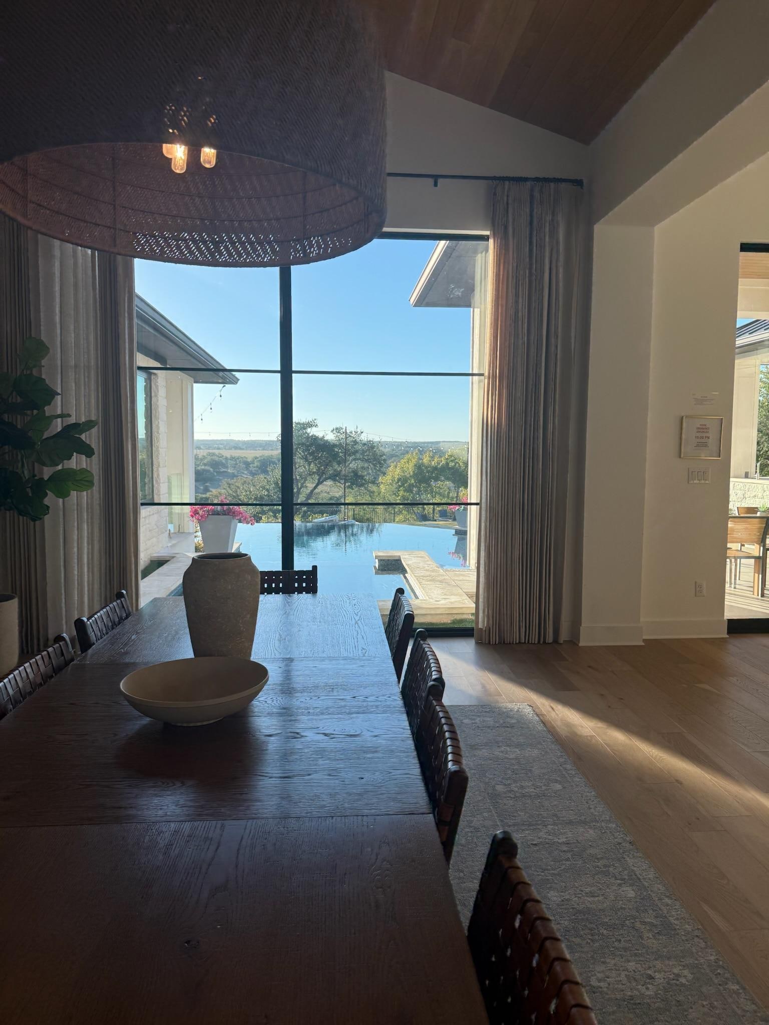This home is a large group's dream. With 6 bedrooms, 6 bathrooms, 15 luxurious queen beds, 1 king bed, this home easily sleeps 28 people! Driftwood Luxury is a SINGLE STORY home designed for large groups to stay comfortably, with large dining spaces, room to relax and play indoors and out, and large, private bedrooms, all with en-suite bathrooms. This 2022 new build was custom built as an exclusive rental property for the discerning guest. Modern and luxurious furnishings, spa bathrooms, a pool table, and 5- 65inch TVs. The spacious chef's kitchen features top of the line appliances and is outfitted with everything you could possibly need. The living areas exude comfort and style inviting casual conversation, a game of pool or a a few spontaneous hands of cards. The enormous back yard overlooks hundreds of acres of heritage oak trees in an endless savannah-like vista as far as the eye can see. The front yard overlooks a neighboring vineyard reminiscent of Tuscany. The setting is ideal for relaxing or entertaining, with a pristine negative edge pool with in-pool loungers, hot tub, swim up bar, cabana and multiple outdoor living areas. It is all “fun & games” with a hardscaped yard game area, fire pit, hammocks, and outdoor kitchen with built in grill, and plenty of seating to watch a football game on the outdoor TV.