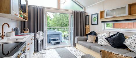 Cottage with private hot tub overlooking fishing lake sleeping 4