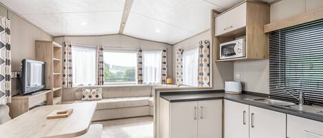 Kitchen area: Electric Oven, Electric Hob, Microwave, Fridge, Freezer, Dishwasher
