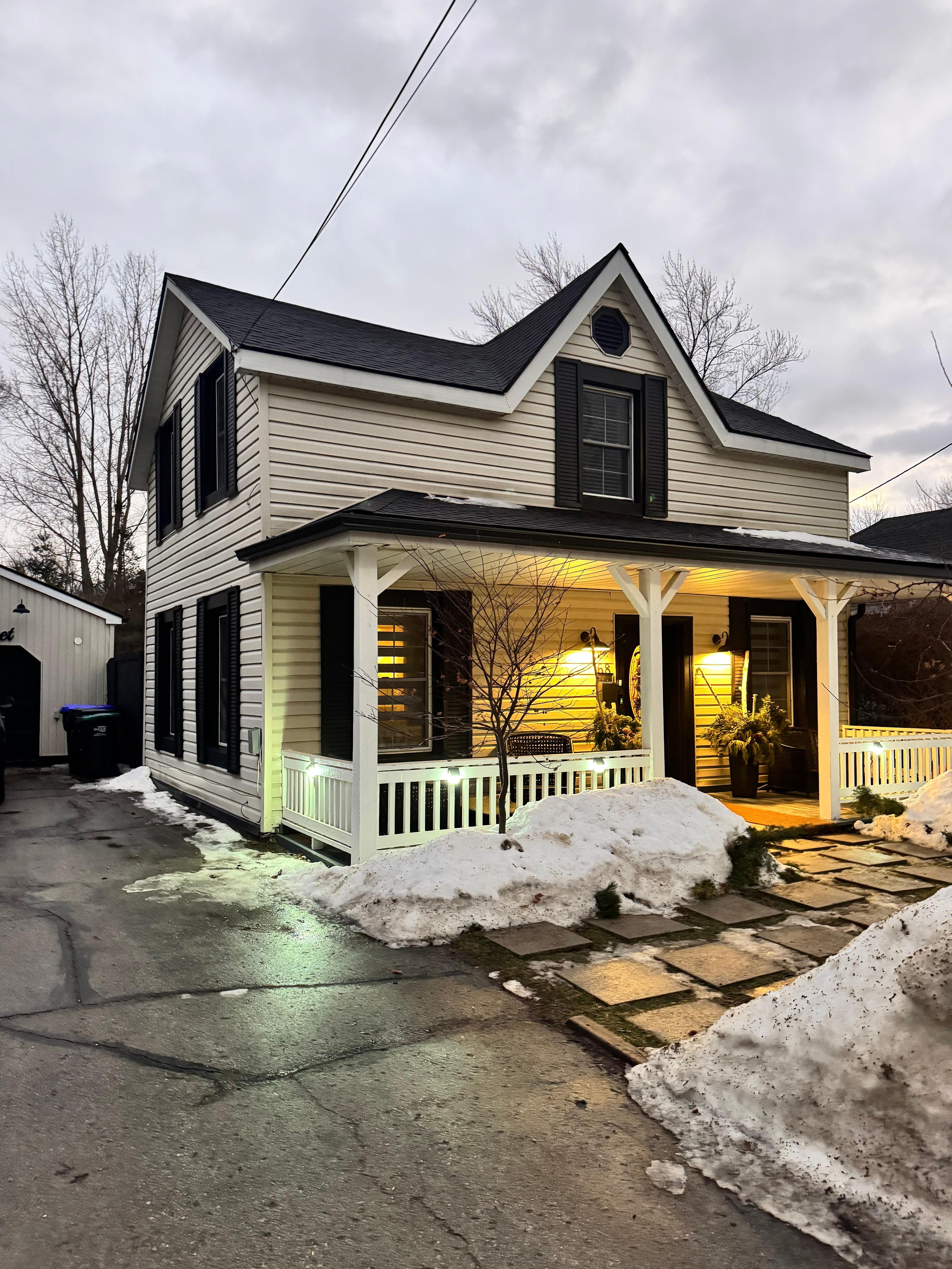 Come stay @ Driftwood on 6th in the heart of Heritage Collingwood downtown. Pet friendly historic home, fully fenced, and backyard, which is perfect for your furry friends.Featuring four bedrooms, 1 king, 3 queen beds. Two full bathrooms. The house is perfect for eight guests but offers a ninth Guest for an additional cost of $90. Top-of-the-line air mattress or couch is provided for additional guest. This professionally fully renovated century home boasts unique minimalistic modern art with all the bells and whistles. Large front porch to enjoy your morning coffee with views of Blue Mountain from the street. Parking for six vehicles on driveway and an extra large backyard fully fenced in. Professionally landscaped with many mature trees and flora/fauna. Wake up to songs of many birds and the hellos from squirrels bunnies and chipmunks. Each space is uniquely designed, while comfort is our main goal to make each guest experience fabulous.