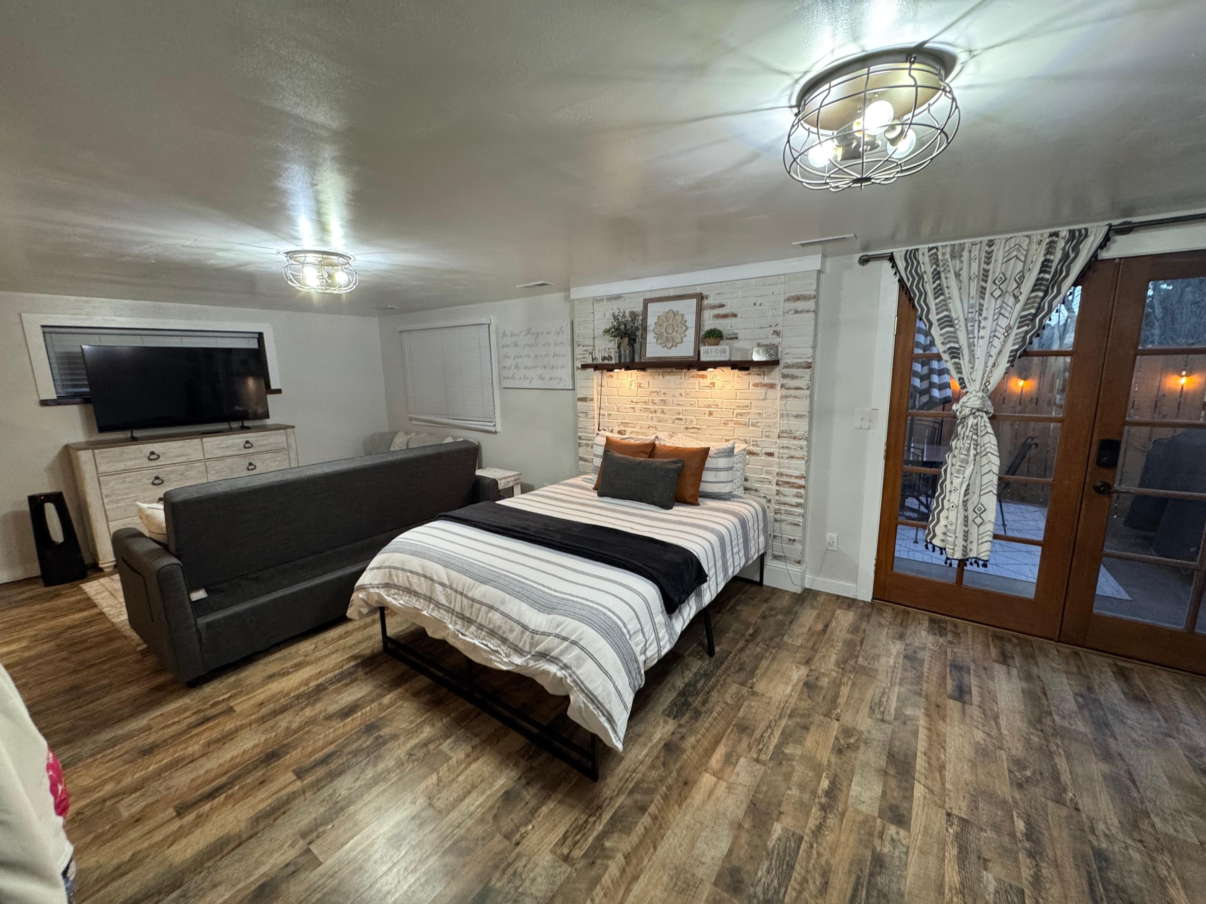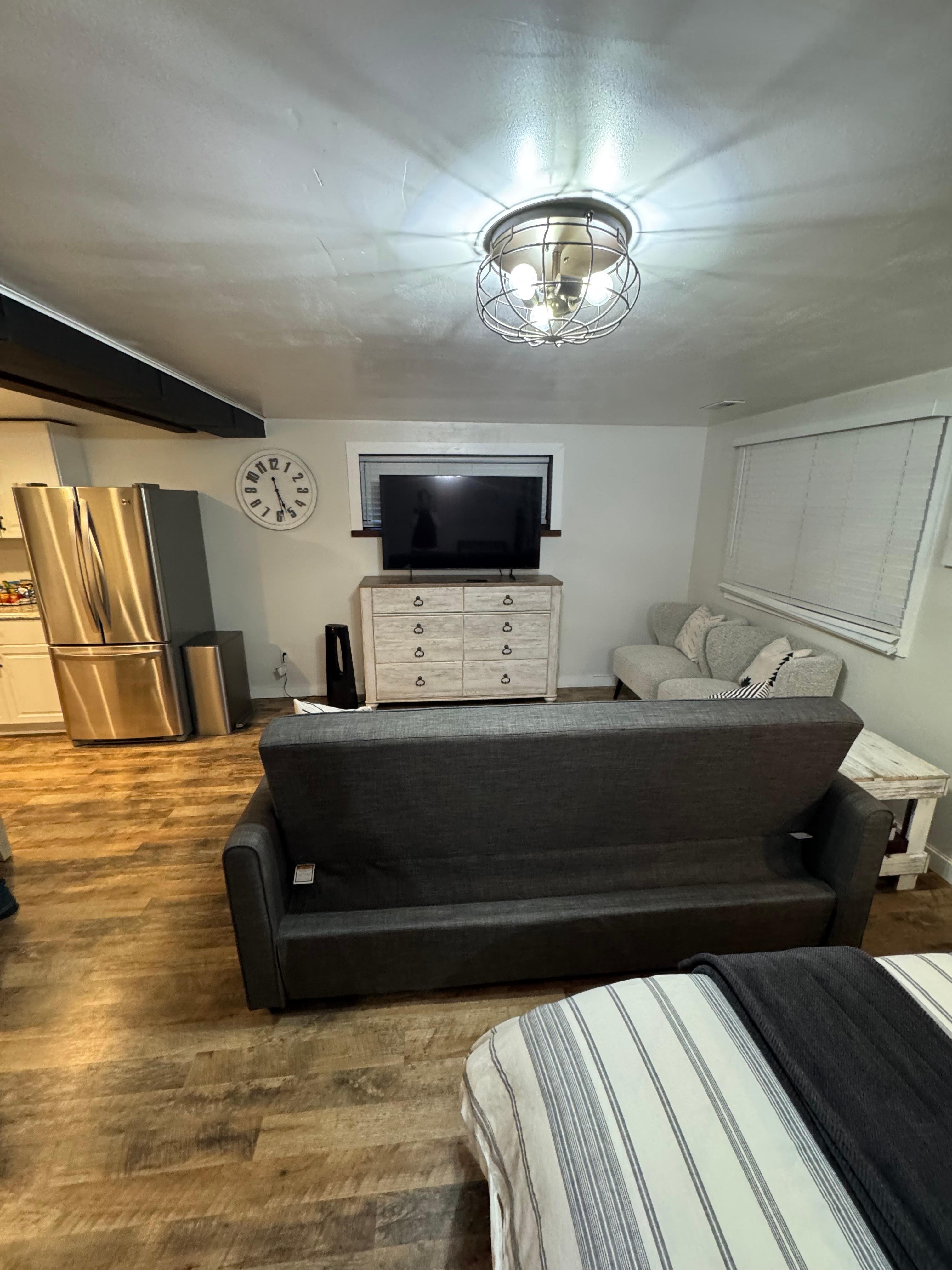 Our newly remodeled studio basement apartment, with private entrance and patio includes; full kitchen, queen bed, a sofa sleeper, full bath with tub/shower combo, washer and dryer, Outdoor grill for BBQing your favorite meals, and a cozy wicker couch next to a fire pit you're sure to make memories around. The Broadmoor neighborhood is known for spotting wildlife, so keep your eyes open and enjoy.