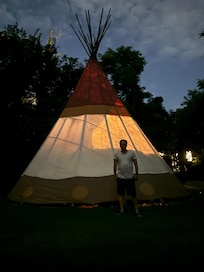 Wow, what an incredible weekend and Melissa is such a marvelous hostess! Her property is near and convenient to many areas in Denton. I was visiting my son for Family Weekend at UNT and it was very easy to get to the campus.When you arrive, you will enter through the secret garden. It is so magical, and then you are transported to your own secluded, private tee-pee. The tee-pee is quite spacious and the beds are very cozy. I was afraid that I might get too hot, considering the time of year I visited, but with the fans that were provided, I was quite comfortable. The she-shed (bathroom) had an A/C and it was refreshing to take a bath and relax in a spa like environment.Melissa can even do a photo shoot with the vintage pickup truck parked on the property, or prepare a scrumptious breakfast. The two menu items to choose from are the Mean Green breakfast sandwich or her Quiche Lorraine, both are served with fruit, orange juice and coffee or tea. I had the pleasure of having both since I stayed the whole weekend. They were just fabulous! I highly recommend staying and enjoying a very unique experience, whether your by yourself, glamping with the girls, or wanting to something outdoorsy with the family. Melissa is very responsive should you have any questions or concerns. I've already booked another stay and I can't wait to recharge and reset once again!