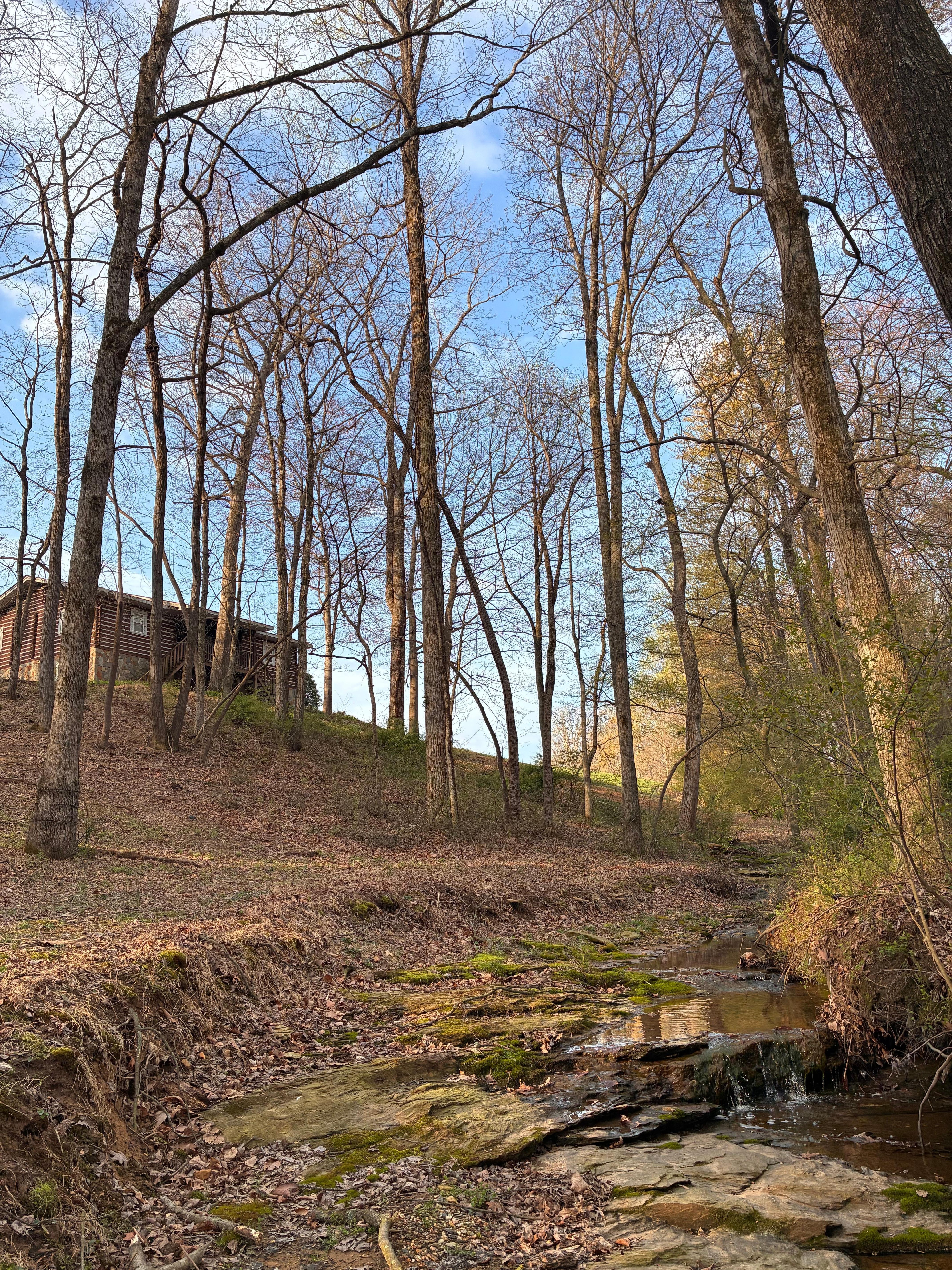 Snuggle up by the fireplace or relax in the hot tub, surrounded by woods and a stream on a real working farm. This genuine log cabin is located just five minutes from Interstate 77, tucked away in the foothills of North Carolina's Yadkin Valley Wine Region.