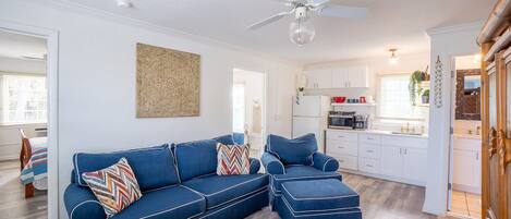 Step outside and feel the warm Atlantic breeze— the cinnamon-colored sands of Flagler Beach are just across the street. The soothing sound of waves, the scent of salty air, and the vibrant beachside energy surround you from the moment you arrive. From the suite, you can stroll to oceanfront restaurants, coffee shops, parks, boutiques, and nightlife, all just a few blocks away. Everything you need is right here, creating the perfect car-free beach vacation.
