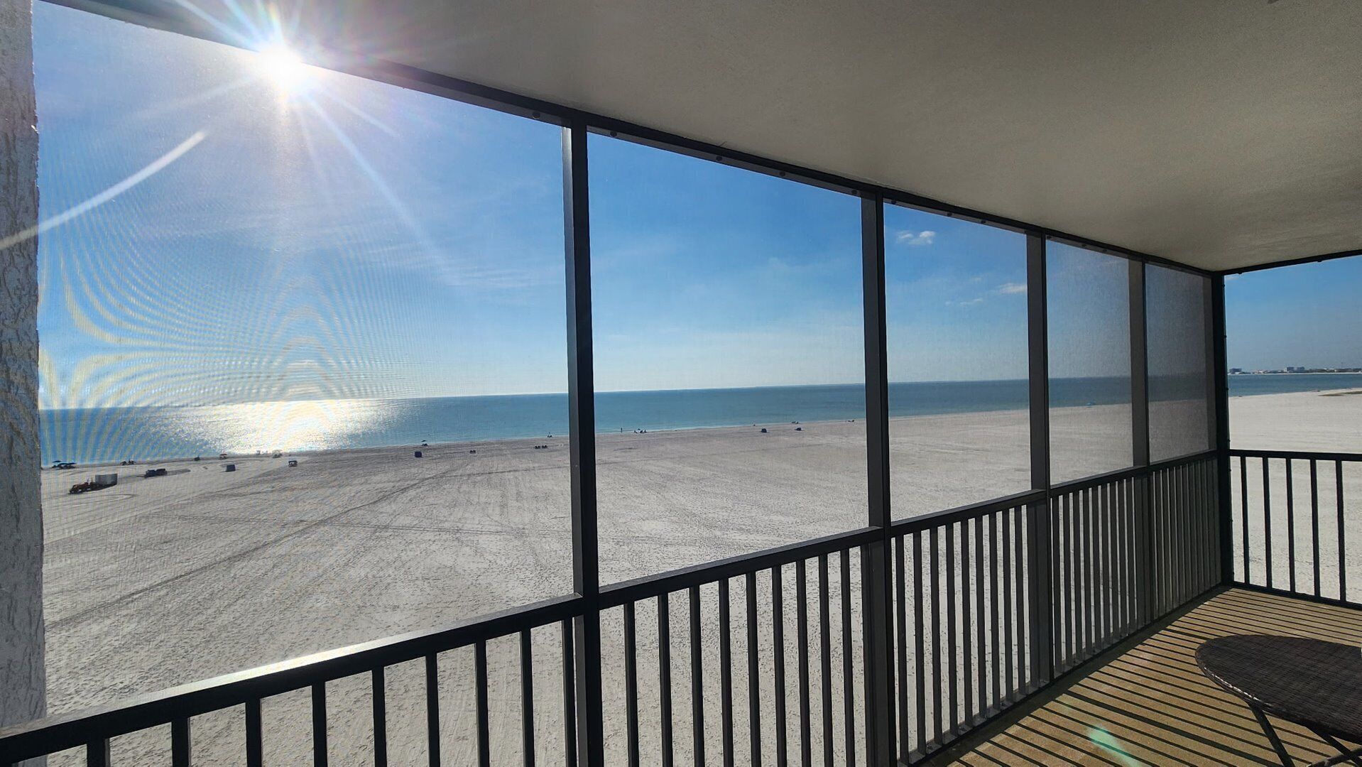 Enjoy outside seating with three screened lanais, one for each bedroom and living room. Other condo features include a full-sized washer and dryer, fully equipped kitchen, spacious living and dining room and two full bathrooms. The primary bathroom has a standard walk-in shower, and the guest bathroom provides tub/shower combo. All linens are provided, including beach towels!
