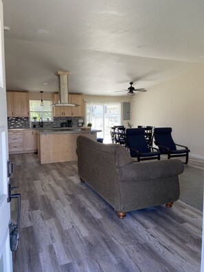 My husband and I came with two friends and our dogs for a gravel race weekend. This property was well laid out, well stocked, clean, convenient, and even had a garage we could use to store our bikes!