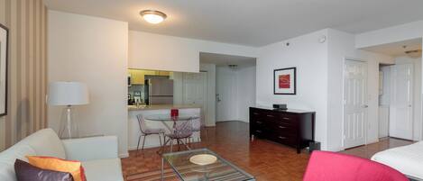 Pets are allowed in select apartments and are subject to a $500 non-refundable pet sanitation fee for one pet, $750 for two pets. Additional charges and size/breed restrictions may apply and vary by building. All pets must be approved by Furnished Quarters. Please let us know ahead of booking if you plan on traveling with a pet.