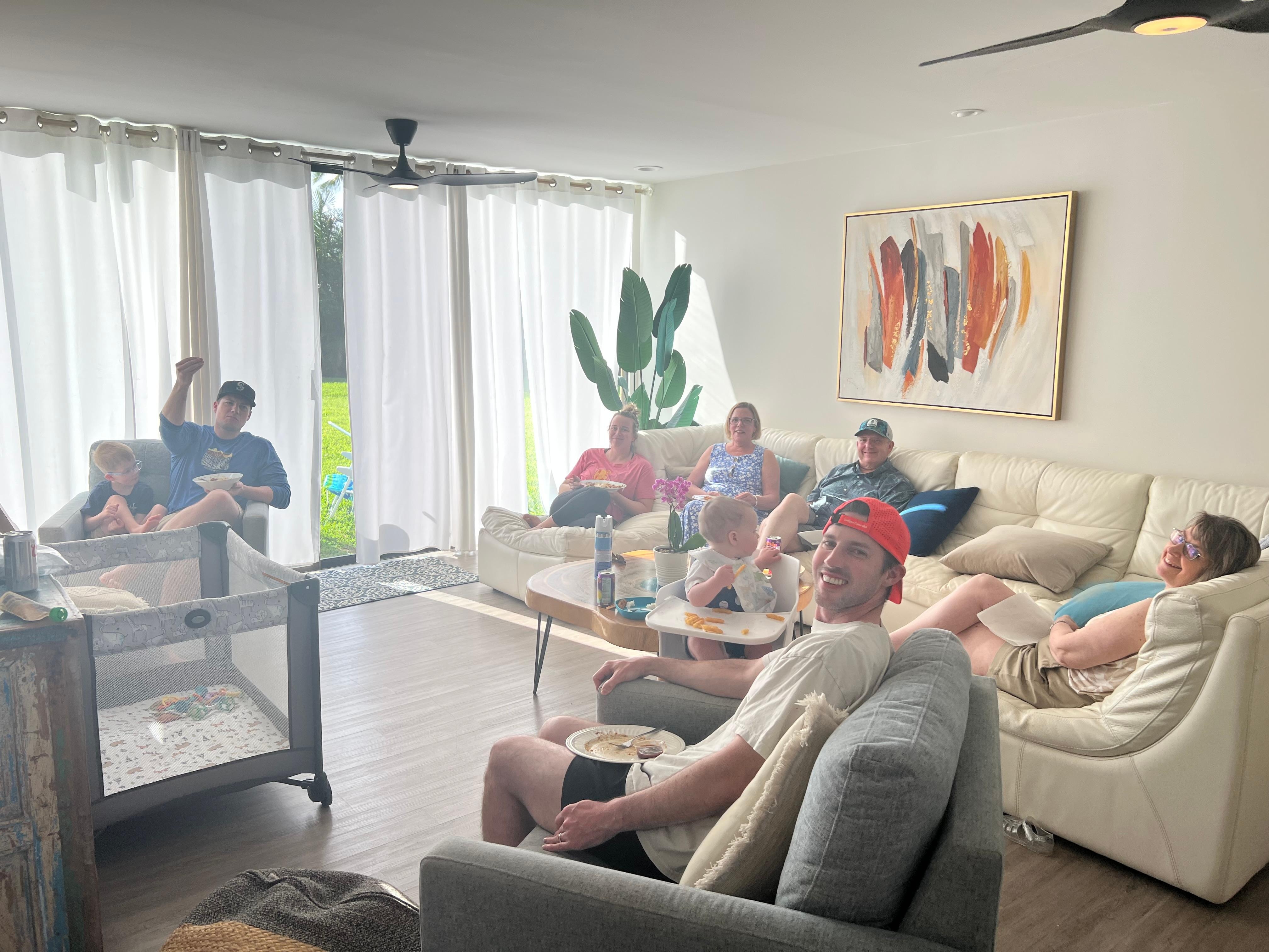 The kitchen comes fully-equipped with new appliances and cookware, so you can cook delicious family meals when you aren't enjoying one of the many restaurants onsite or nearby. We also have a coffee machine and Keurig so you can catch the sunrise on the beach with a coffee in hand. The living room has a large sofa and armchairs, and is stocked with board games and Hawaii-themed movies - perfect for enjoying an evening in... or gather on the patio to enjoy the warm tropical evenings.