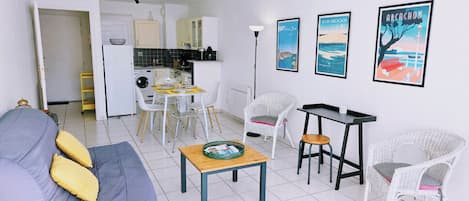 Come enjoy the gentle lifestyle of the Arcachon Bay and discover its privileged setting with its ocean beaches, forest, oyster ports, the famous Dune of Pilat, and much more. Here, you're in La Teste-de-Buch, just a few kilometers from Arcachon. Our apartment is located on the second floor (elevator) of a small, recently built, southeast-facing residence. Its location in the town center gives you direct access to all amenities (shops, municipal market, restaurants, bike path, bus line, etc.). You'll have a private and secure parking space in the residence and a secure shared garage for storing your bikes. The apartment consists of a beautiful, bright living room with a fully equipped kitchen, a dining area, and a TV lounge opening onto a loggia with garden furniture. A bedroom with a double bed and a bathroom with a spacious shower and toilet are also available. The apartment is centrally heated with city gas. Air conditioning is available in the living room. Rental from Saturday to Saturday all year round. Badge entry, digital code, intercom, remote-controlled parking gate. Bed linens, towels, and end-of-stay cleaning are available for rent (optional services for a fee, contact the owners directly). For everyone's comfort, this accommodation is non-smoking. An adult city bike is available. The cottage is suitable for teleworking (office area in the bedroom, internet connection). Market, Police Station
