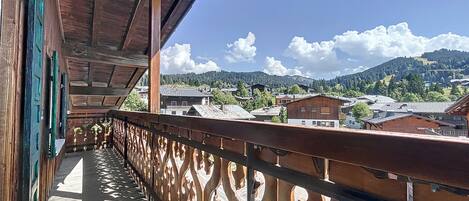 Light-filled, carefully decorated, triplex apartment with views over the resort and the Chavannes comprising 3 en suite double bedrooms, a cosy living area with wood-burning stove, and two balconies with South-East aspect. Ideal for quiet holidays whilst remaining close to the centre.