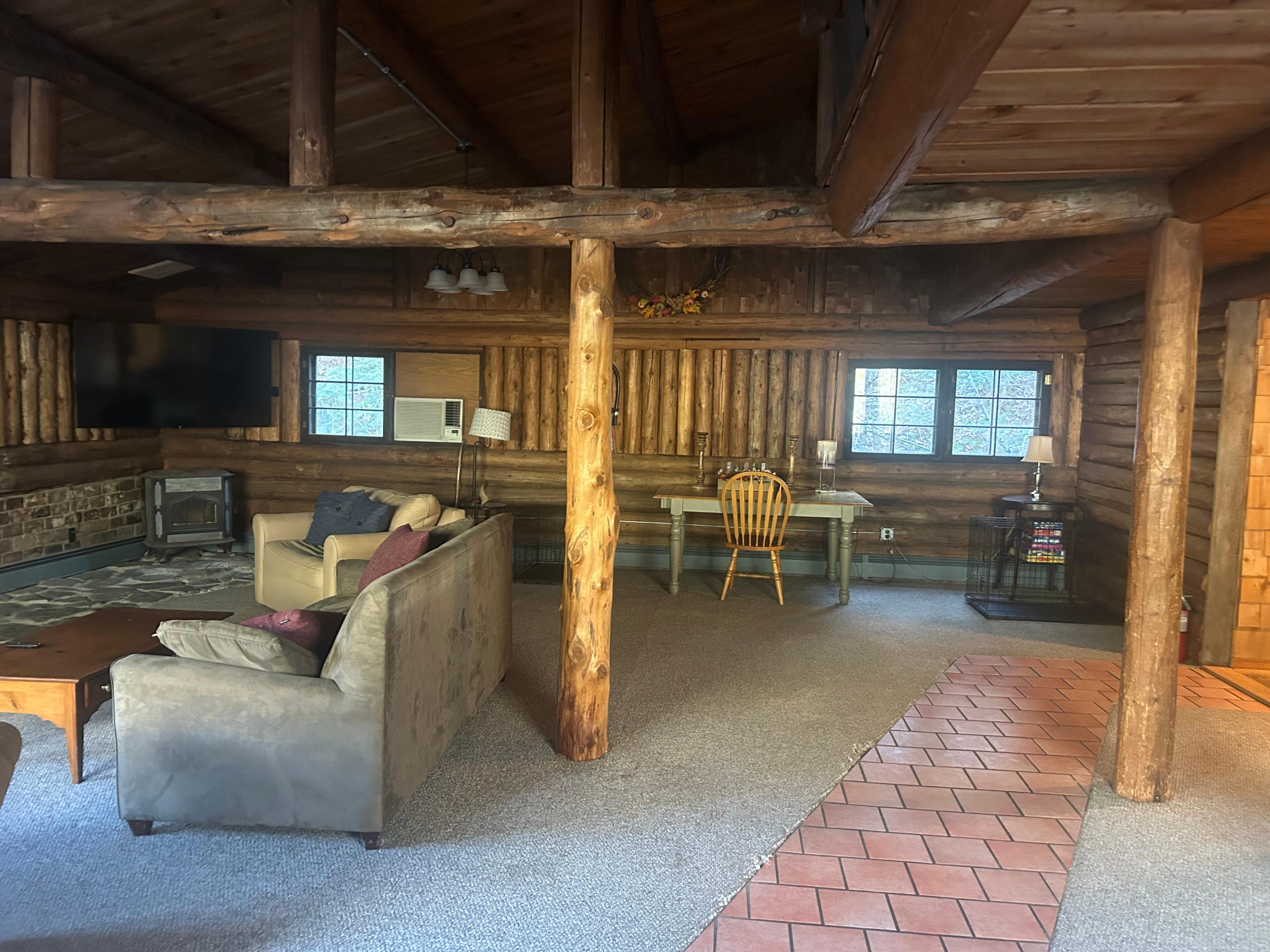 Rustic Log Cabin #3 - “The Lodge” is the largest log cabin on site. This cabin is perfect for a couple looking to relax and get away. Enjoy the wood burning fireplace while relaxing. Play a game or build a puzzle. Just 15 minutes from Franconia Notch State Park, Cannon Mountain and the Kancamagus Hwy.