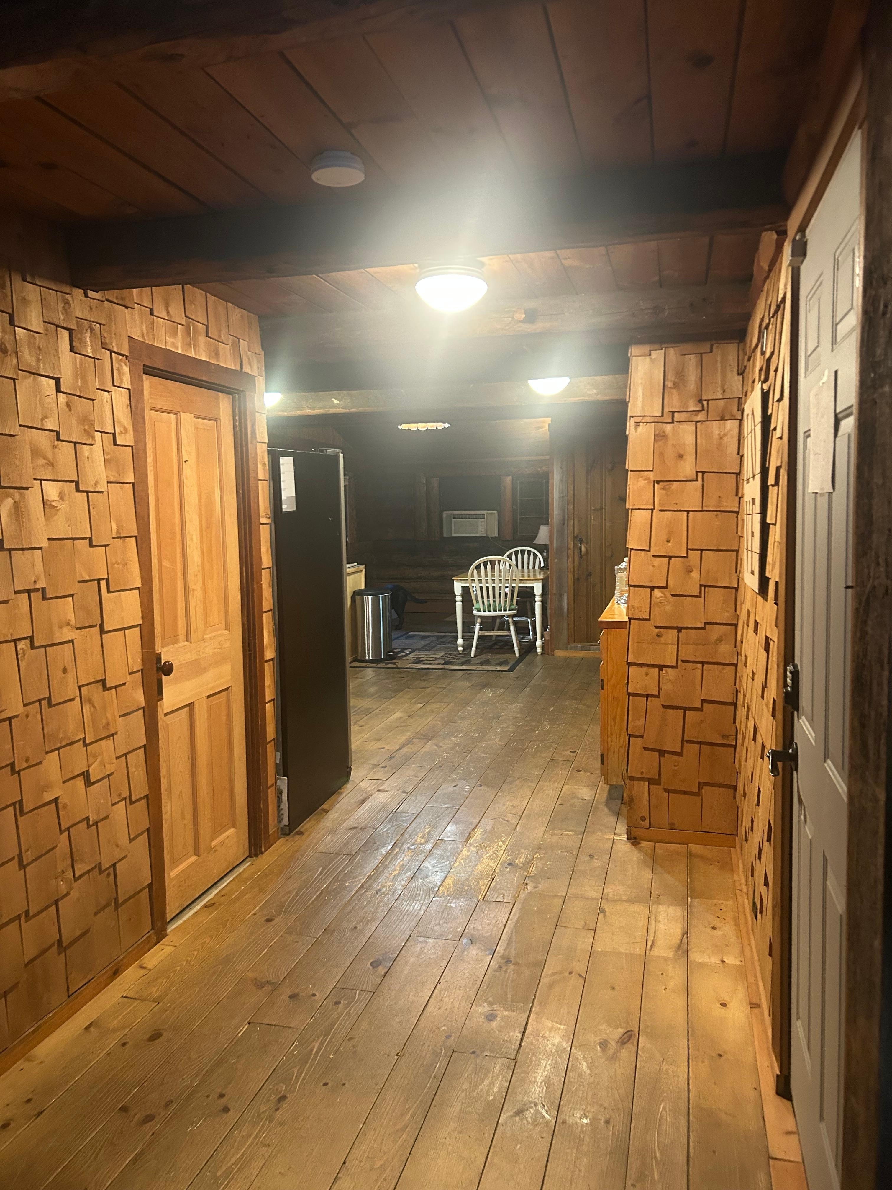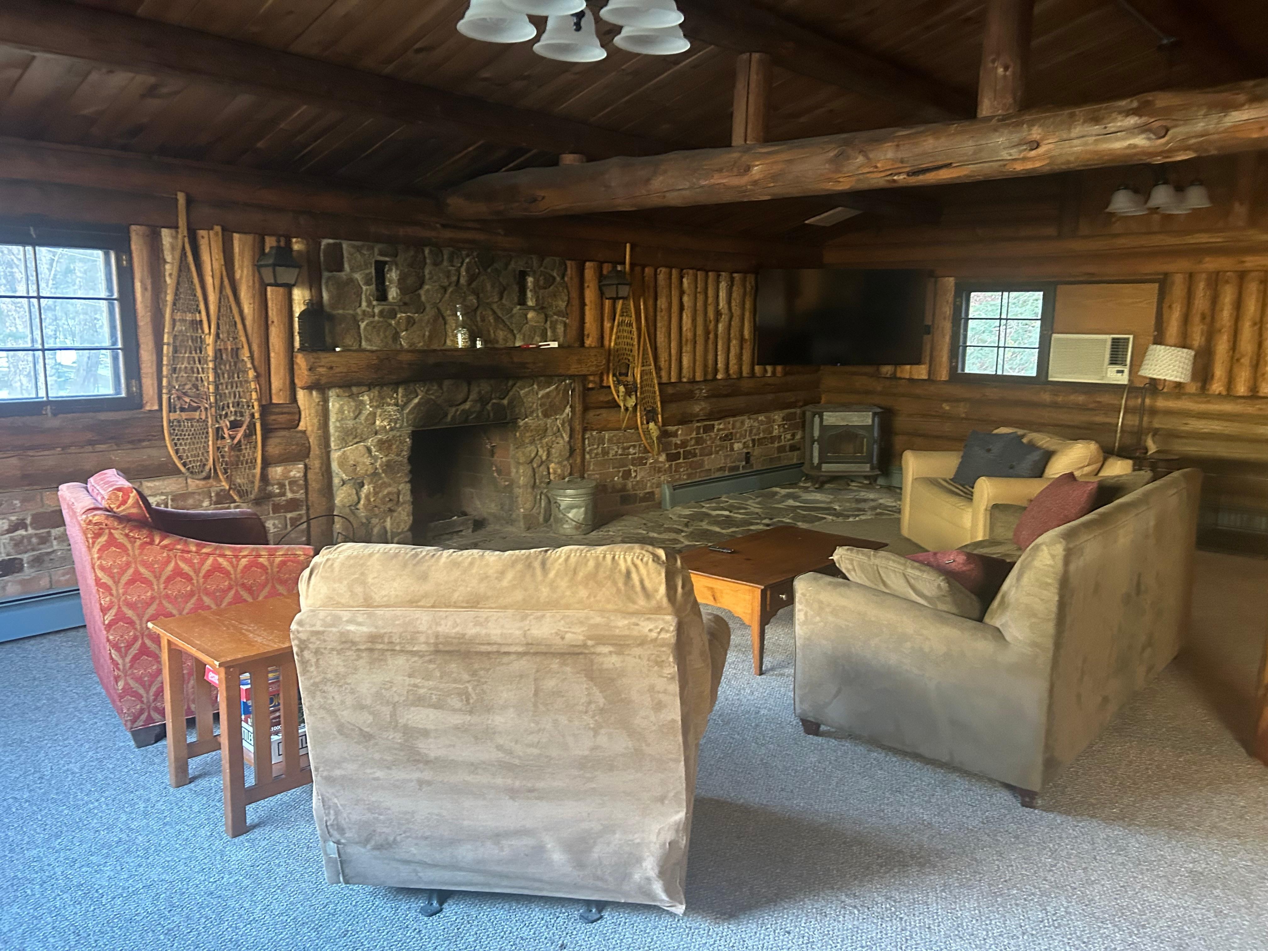 The Lodge is private and is not a shared space. The basement level is accessed by the on-site handyman and cleaning staff during check-out and check-in times. Guests have full access to their assigned cabin plus the parking areas and fire pit. Salmon Hole Brook, trails, other common facilities and the parking lot.