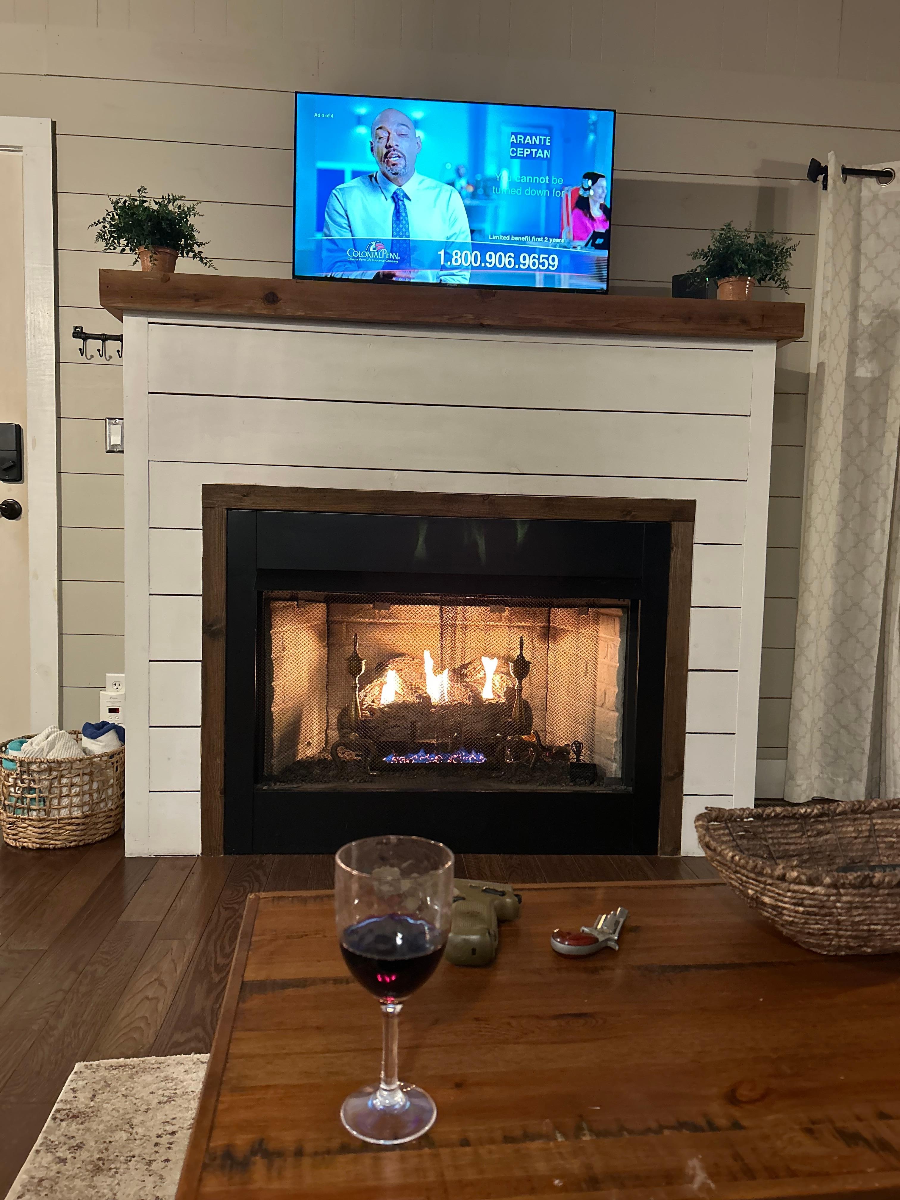 Smart TV, fireplace, books