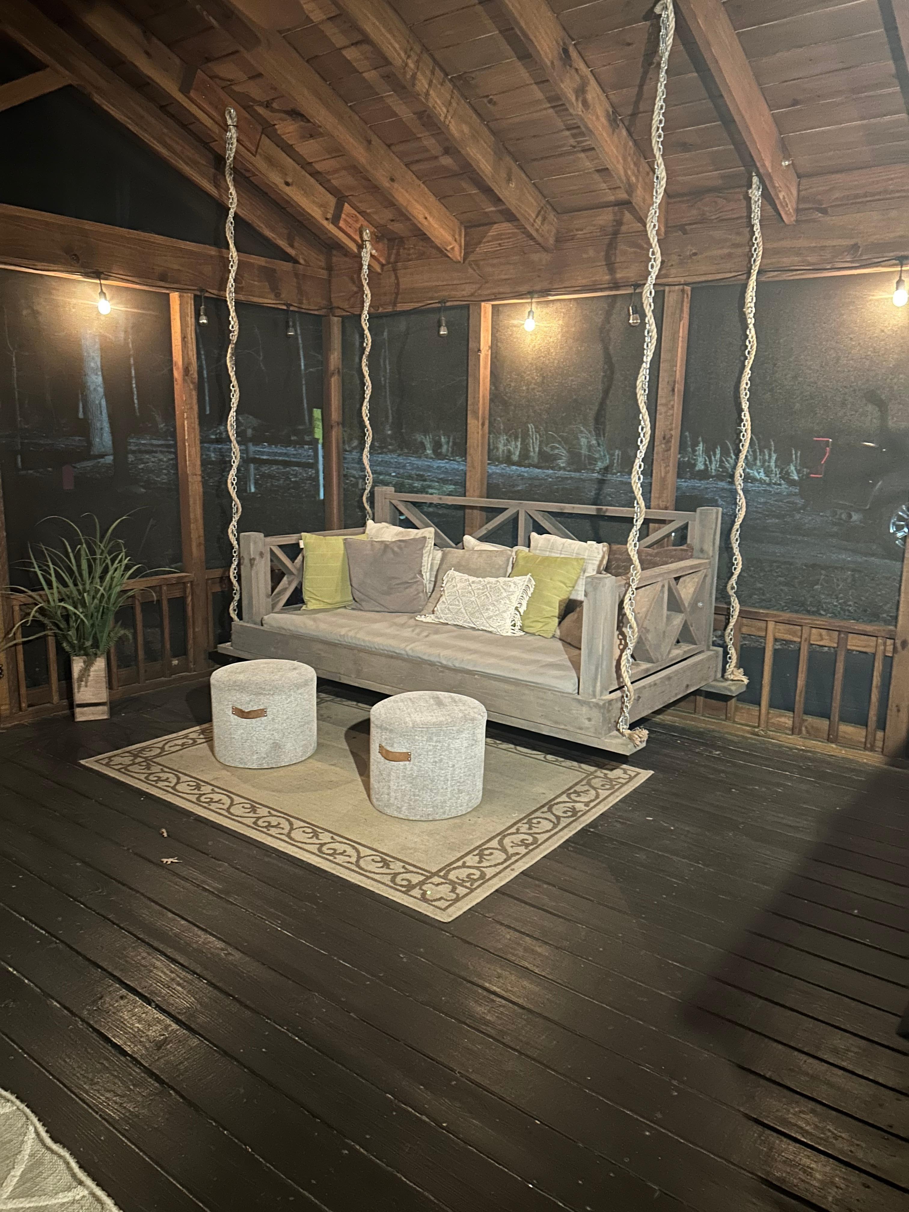 The best cabin with an amazing outdoor area. The host was nothing short of amazing! The bed swing and outdoor space was so nice and relaxing.