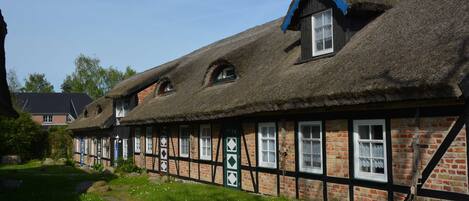 Thatched holiday flats in the middle of the biosphere reserve, approx. 200 m from the Bodden, approx. 3 km from the Baltic Sea in a quiet locationAlt Reddevitz is a small fishing village with approx. 150 inhabitants and a district of Middelhagen, the centre of the Mönchgut peninsula, which lies in the south-east of the island of RĂŒgen. To the south-west of Alt Reddevitz, a 3.5 kilometre long, 300 metre wide headland stretches into the Greifswald Bodden, the Reddevitzer Höft. Through fields and meadows, past gorse and low coastal forests, you reach a steep coast at its end, which is characterised by mighty boulders. From here you have a beautiful view of the island of Vilm and the south coast of RĂŒgen.Short descriptionOther : Non-smoking houseShort description 1Number of kitchens : 1SurroundingsLoaning facilities : Boat hireSports facilities in the area : Fishing, rowing, sailing, divingSurroundings 1Location description : Nr 2: Ground floor flat Individual comfort equipment for 2 - 4 persons. Size approx. 49 square metres for max. 4 persons, comfortable modern furnishings. Living room with comfortable seating area (including sofa bed), dining area, colour TV with satellite reception, CD stereo radio, fully equipped kitchen (electric cooker, fridge, coffee machine, toaster, kettle, sufficient crockery and pots), hallway with wardrobe and wardrobe, bedroom with double bed, 2 bedside cabinets, spacious wardrobe. Bathroom with shower and WC. Cellar room with garden furnitureThe natural beach on the Hagensche Wiek is only 300 m from the holiday complex and invites you to take a refreshing dip and swim. The shallow waters are safe for small children. The Baltic seaside resorts of Baabe, Göhren and Sellin with their sandy beaches are approx. 3-5 km away and can be reached on well-developed cycle paths.Other sports and leisure facilities : Horse ridingGarden and outdoor facilitiesGarden equipment : Garden furniture availableServices Other :Outside: Garden available; Total car parking spaces: 1; Private car park; Terrace;General: 2nd double bed; Bathroom: 1; Plot area: 2000 sqm; Renovation year: 2013; Bedroom;Living: Double sofa bed; Radio; Satellite TV; TV;Bath/WC: Shower; Toilet;Cooking: Oven; Electric cooker; Freezer; Stove; Coffee machine; Fridge; Toaster;Other: Angler-friendly; View; Heating; Internet; Non-smoking property;Distances (as the crow flies, approx.): Distance cafĂ©s/ restaurants: 0.70 km; Distance food market: 1.00 km; Distance lake: 0.20 km; Distance to train station: 27.00 km; Distance to airport: 36.00 km; Distance to sea: 3.00 km; Holiday park nearby: 1 m;Brief descriptionOther : Non-smoking houseSurroundingsSports facilities in the neighbourhood : Fishing
