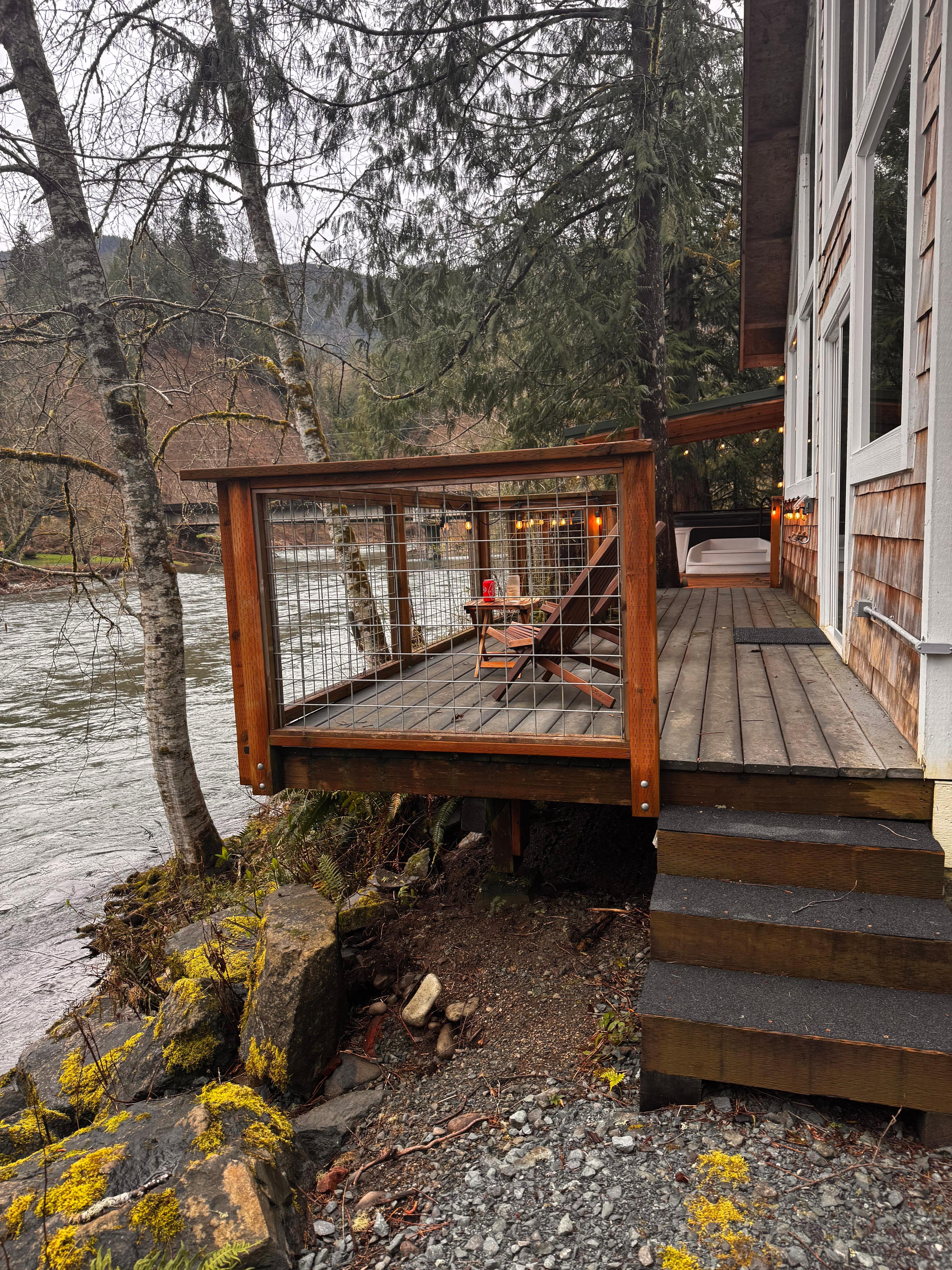 We very much enjoyed our getaway at this fishing cabin, with its rustic charm and beautiful views. Whether you plan to fish or are just relaxing and listening to the river you cant help but feel completely unplugged from the chaos of every day life. My husband and I spent two nights here celebrating our anniversary. The hot tub was just wonderful. We had a evening at the fire pit and then on the day it rained “all day long” we took a “wet” walk at a nearby state park and later just enjoyed playing board games and sipping wine back at the cabin. The host was very good at communicating and even left us a nice homemade welcome gift. I would love to come here again in the warmer weather.