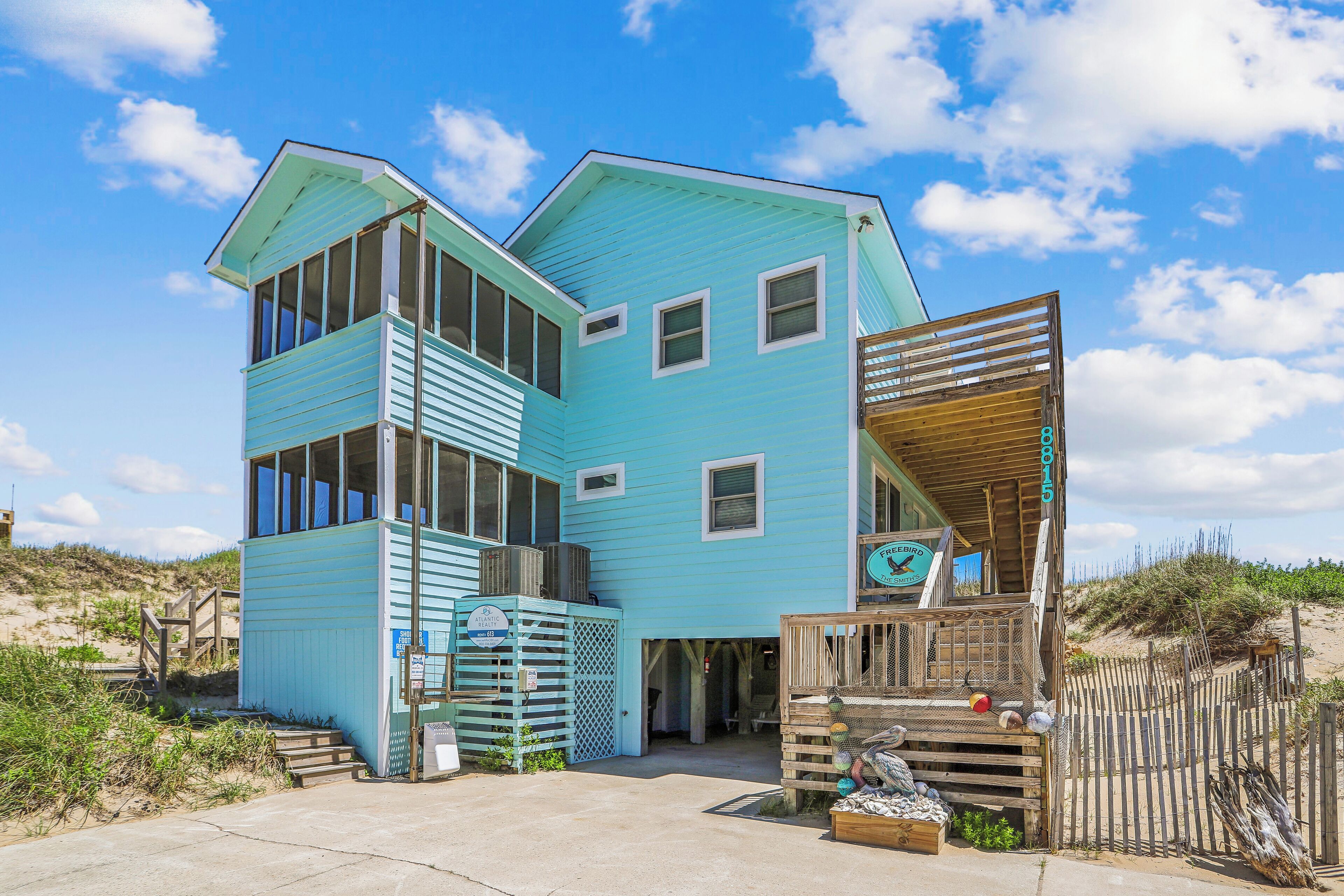 Rental was done online and was super easy! Needed a home w/5 bedrooms and bathrooms, sizable kitchen & dining areas. This house; “Off Course” fit the bill! Very comfortable seating, plenty of kitchen space and eating areas. The bedrooms were nicely appointed and comfortable bedding. All with sliders for a deck experience. The rental was the week of my daughters wedding, and met all expectations & more. On Thursday all the bridesmaids spent the morning & afternoon there with a makeup artist & hair dresser. Plenty of room in the main living & kitchen area with lots of natural light from all the windows. You had sound views and some ocean views from that location. The AC worked great as well! Keyless entry made entering a breeze as well as check out. The kitchen is in need of measuring spoons as I could only locate a 1/2 cup one. Minor inconvenience. Loved not having to pack towels & bedding fir the trip as well as a welcome package of basic needs. I highly recommend “Off Course”, it’s located in the middle of everything Outerbanks and was close to the Wedding Venue; Vista Creek near Manteo.