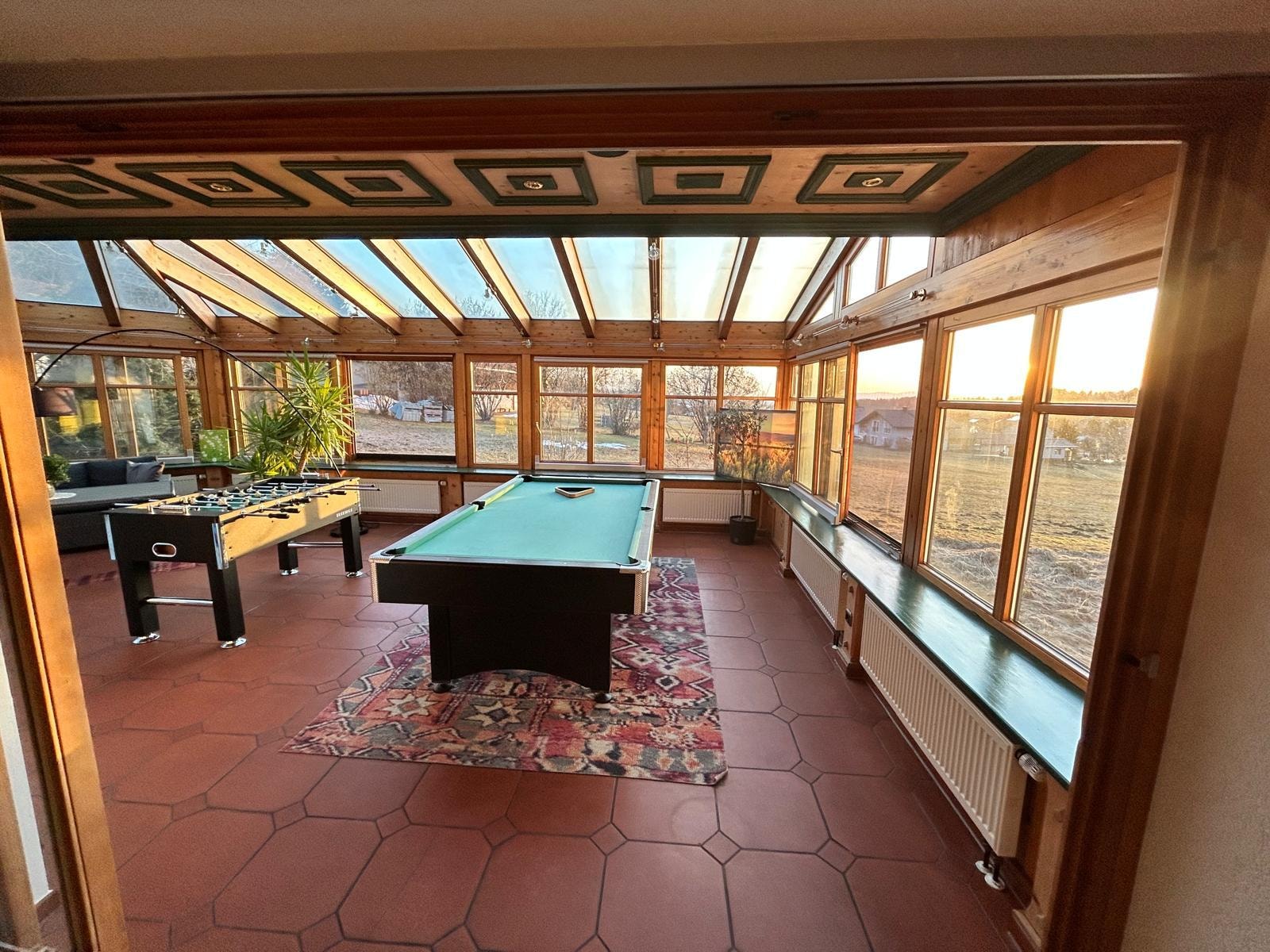 A seat in the sun offers the seating in the conservatory and invites you to cozy hours. Here you can also play a relaxed round of pool billiards.