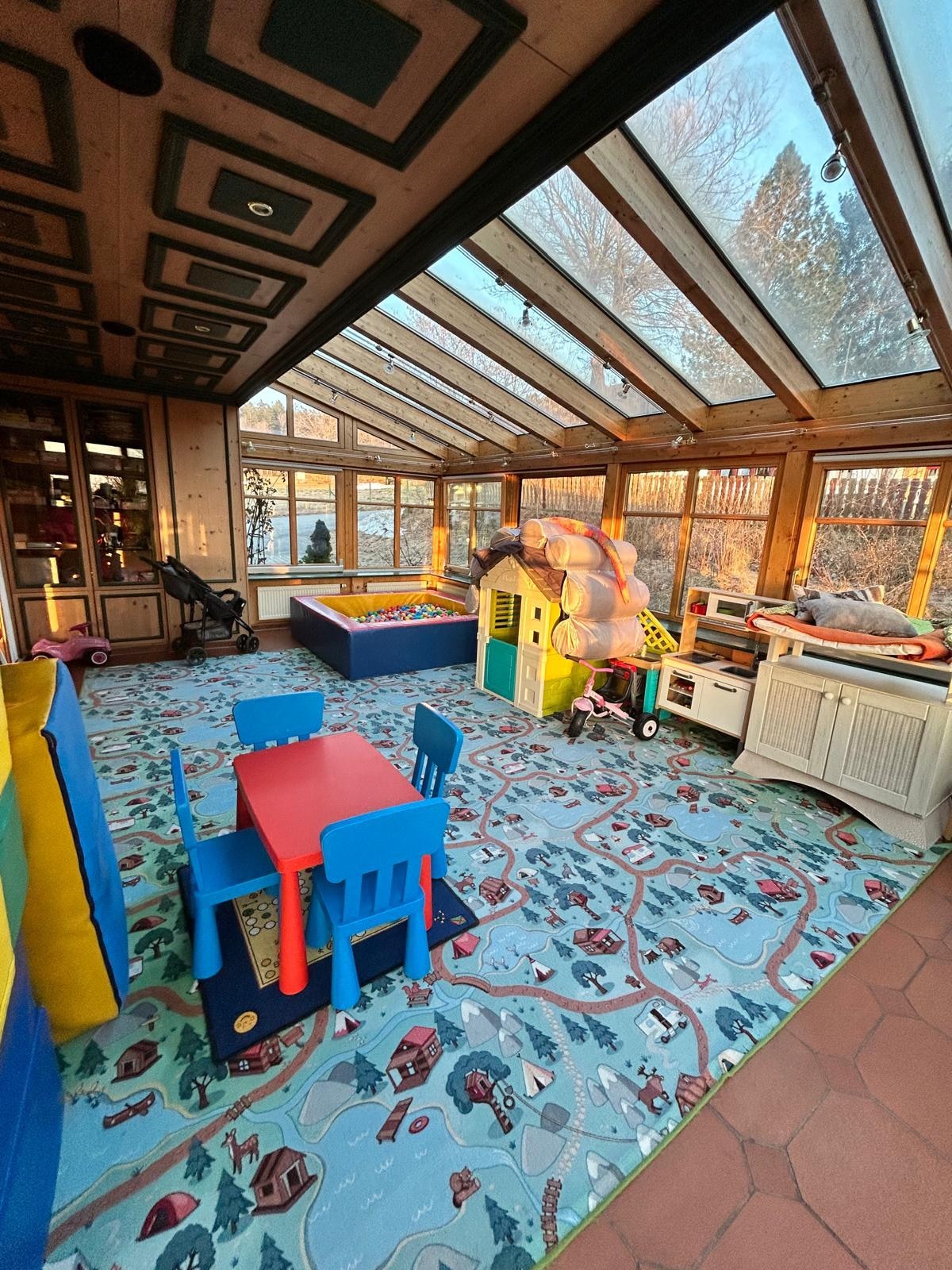 On the ground floor is located next to the entrance area, the common areas with a large winter garden with indoor play area for the kids, which does not cause boredom in bad weather.