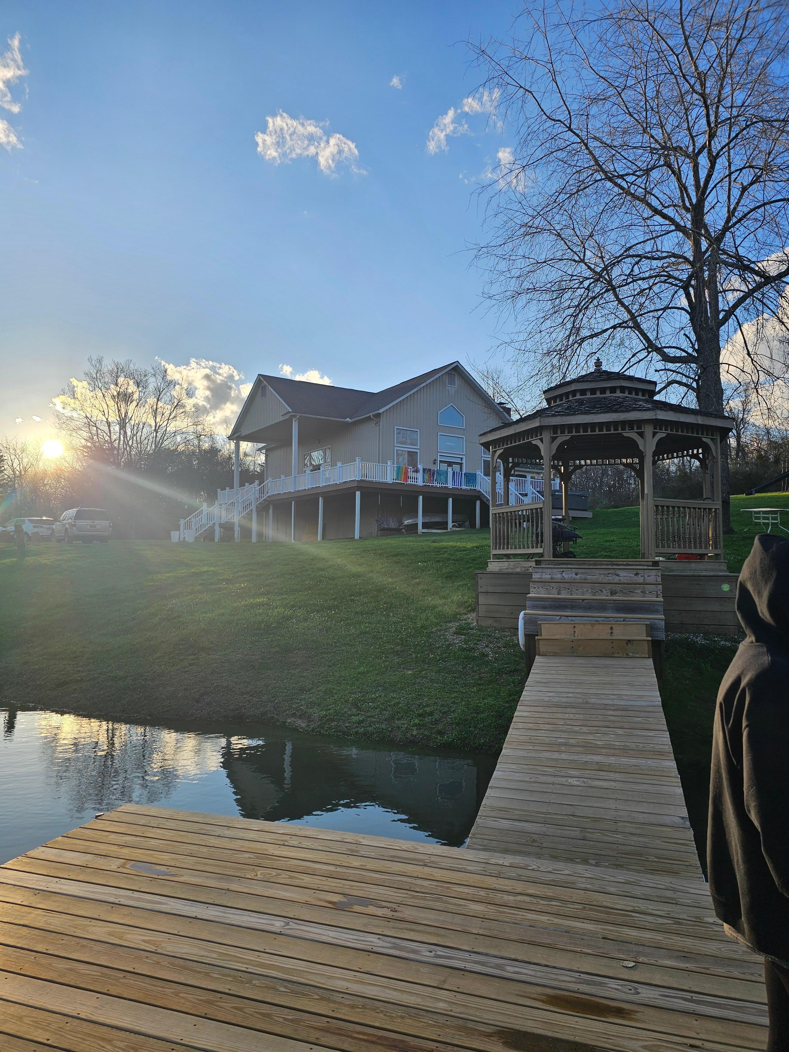 The hot tub was perfect, nice and roomy and strong jets, the gazebo was Beautiful and many hours were spent out there. The kayaks wer super fun, big beautiful peaceful lake. The pickleball and basketball court were used for hours of good play in the sun! The cabin was very roomy and beautiful, the 3 bathrooms we're nice and. Clean also.