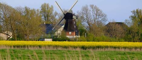Surrounded by pastures with grazing sheep and cows, this beautiful, historic windmill is located in the heart of the beautiful North Sea peninsula of Eiderstedt, near St. Peter Ording, home to one of Schleswig-Holstein's most beautiful sandy beaches. An absolute dream home awaits you! Experience exceptional living comfort here, spread across three tastefully furnished levels! Enjoy the idyllic and tranquil location, far from the hustle and bustle. With 190 square meters of living space and three separate bedrooms, as well as an additional alcove sleeping space in the living area, the Catharina Mill offers space for 6-8 people.