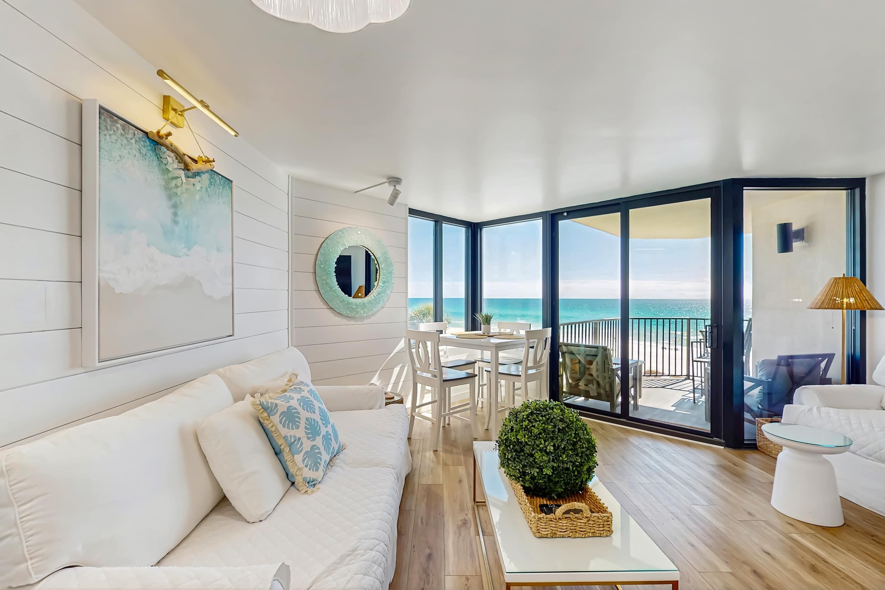 Charming ground-floor beachfront condo with beautiful ocean views from the patio. Sleeps 4 with a queen bed and sleeper sofa. Enjoy direct beach access, three Gulf-front pools, and a prime location next to Pineapple Willy’s. No elevators needed—perfect for couples or small families seeking convenience and relaxation.