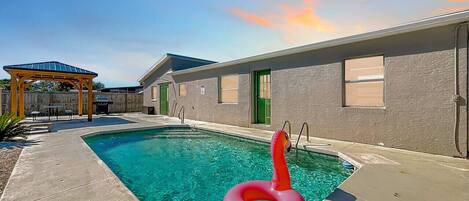 Relaxing pet-friendly house with a heated pool near Beaches, Golf & Dining!