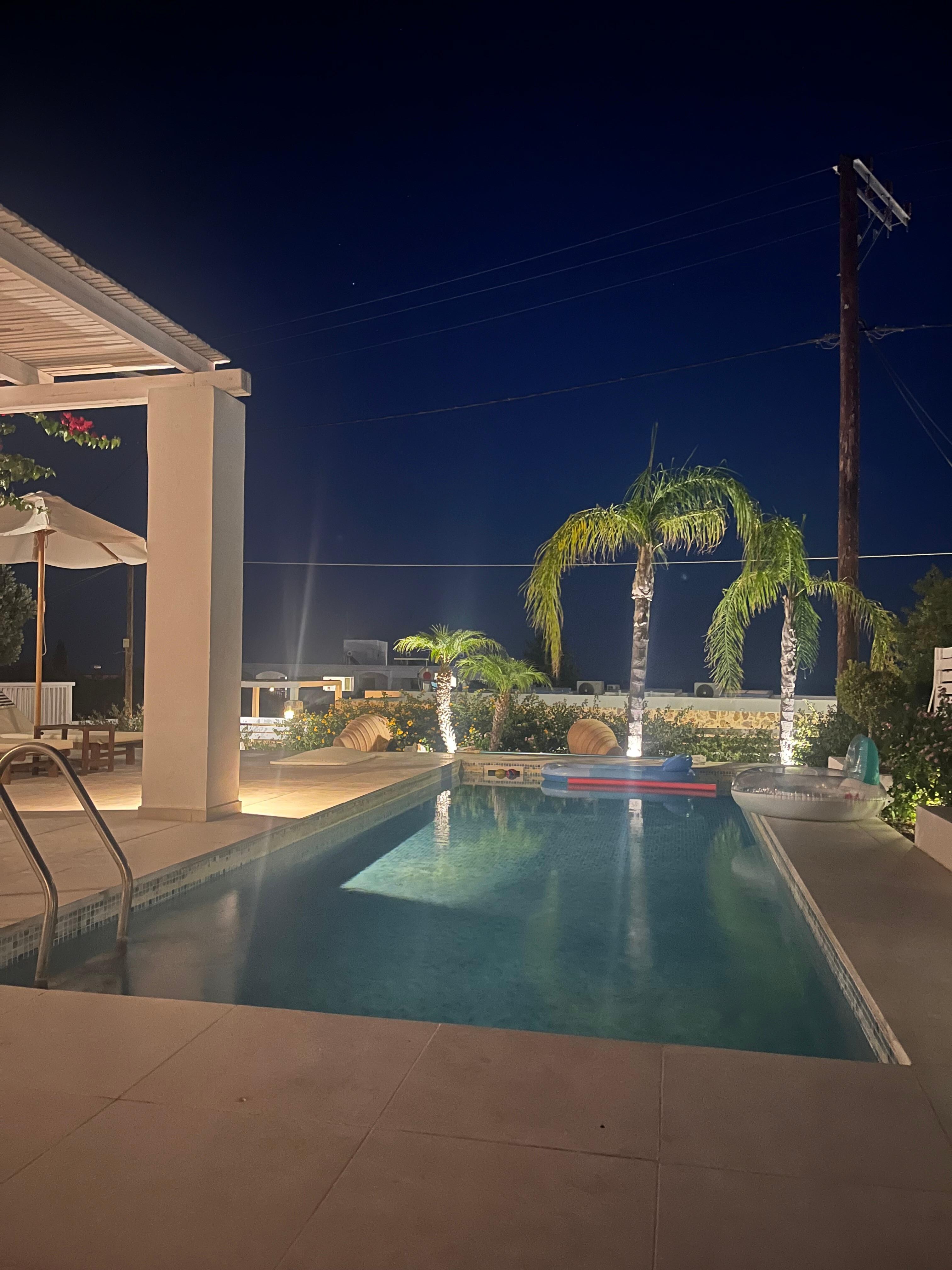 Nice Villa very close to restaurants in Gennadi village. Recommended restaurant is Zorbas. Little disadvantage was that the pool had little leakages and room service was not once a week, only when we call them after 7 days. Unfortunately there was a bad musty odor in the whole kitchchen and in the cabinets, lots of ants in the cabinets, the tables and the floor. Good mattresses and air conditioning.
