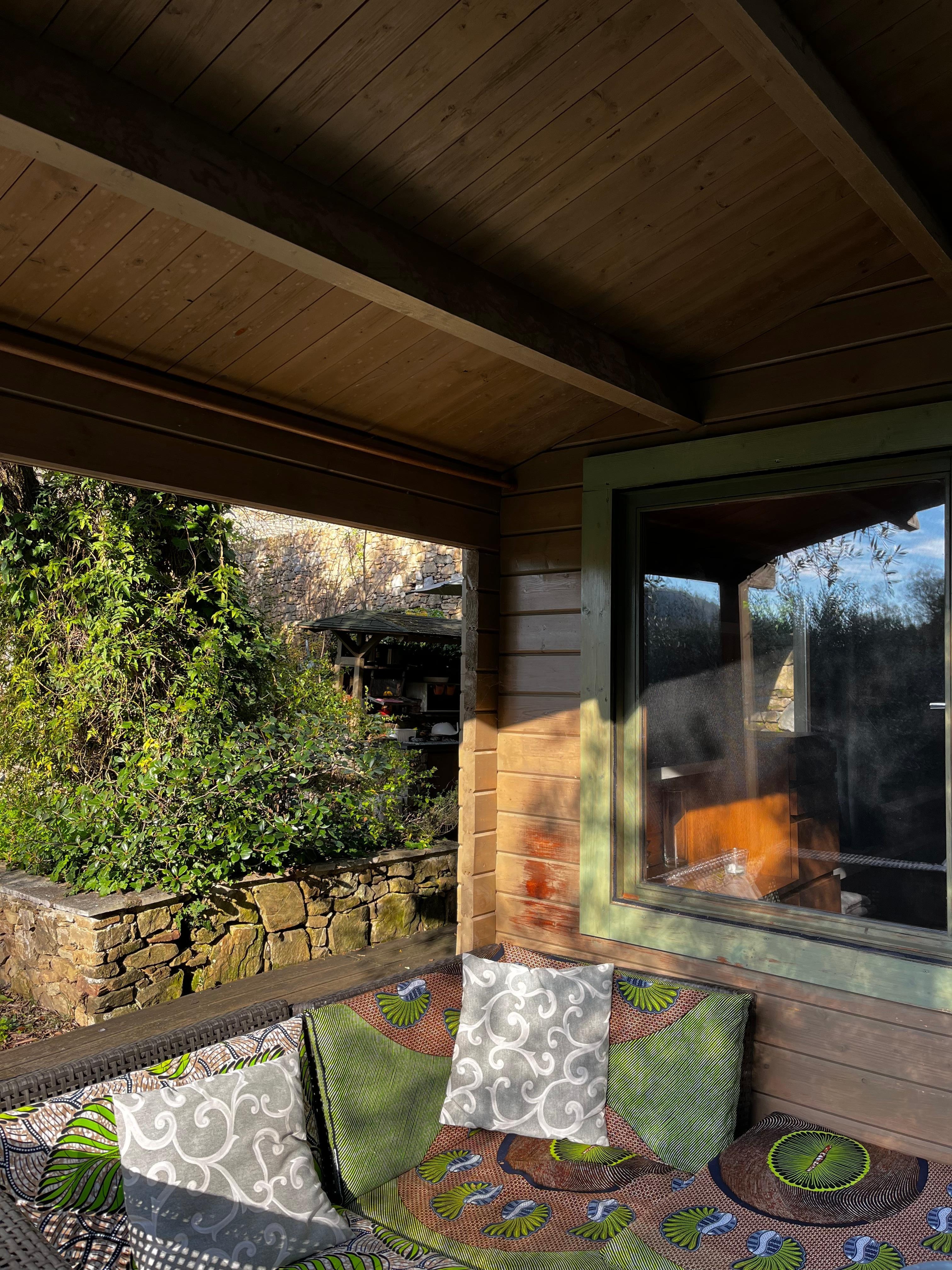 Pretty wooden chalet with all comfort in summer and winter for two people with private swimming pool (children on request) in an olive grove in absolute calm except for the birds, not overlooked, view of the Dolceacqua castle and sea view from the property.