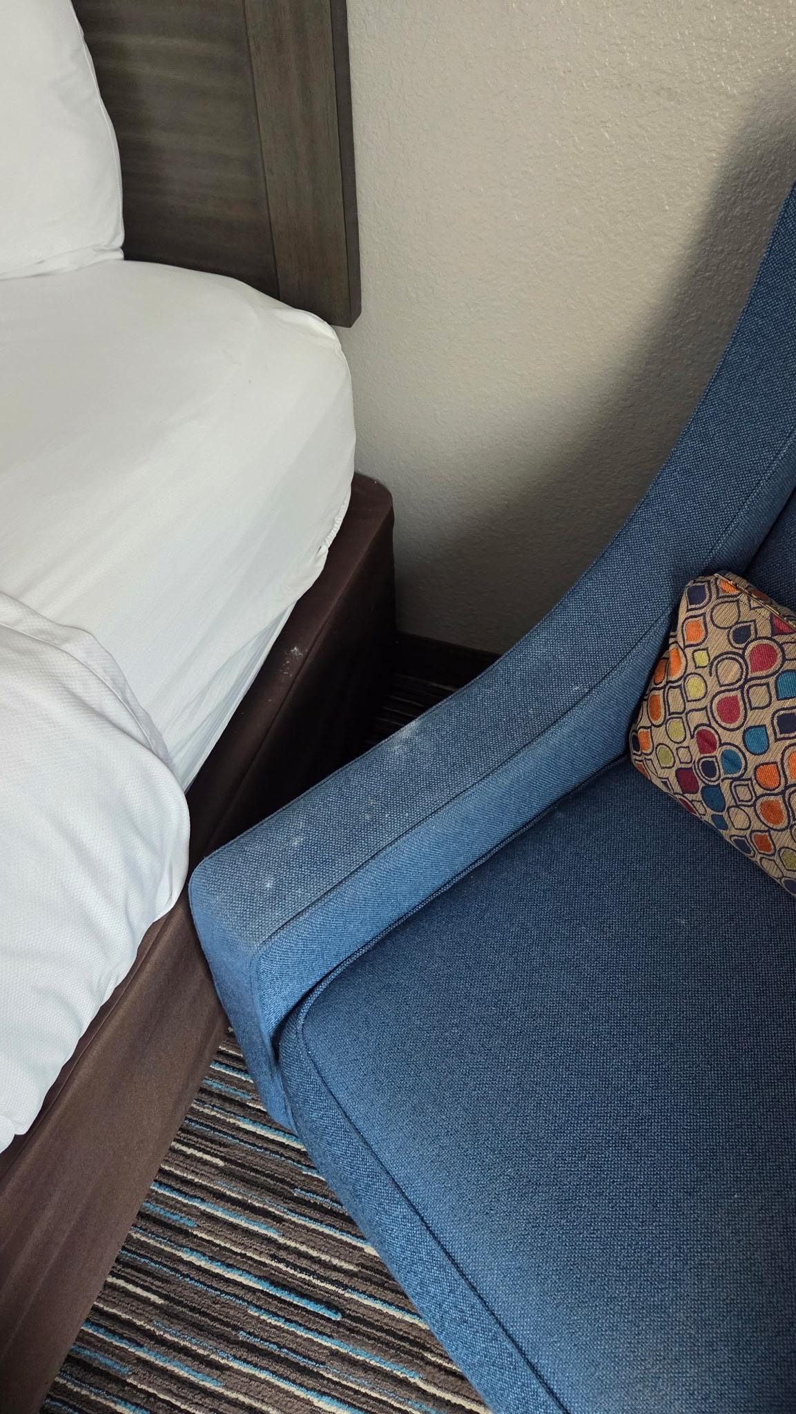 The room was dirty, and did not appear to have been fully cleaned. There were stains, and room had a weird odor. The toilet did not flush. Room did not appear to look at all like pictures online. Area did not feel safe.