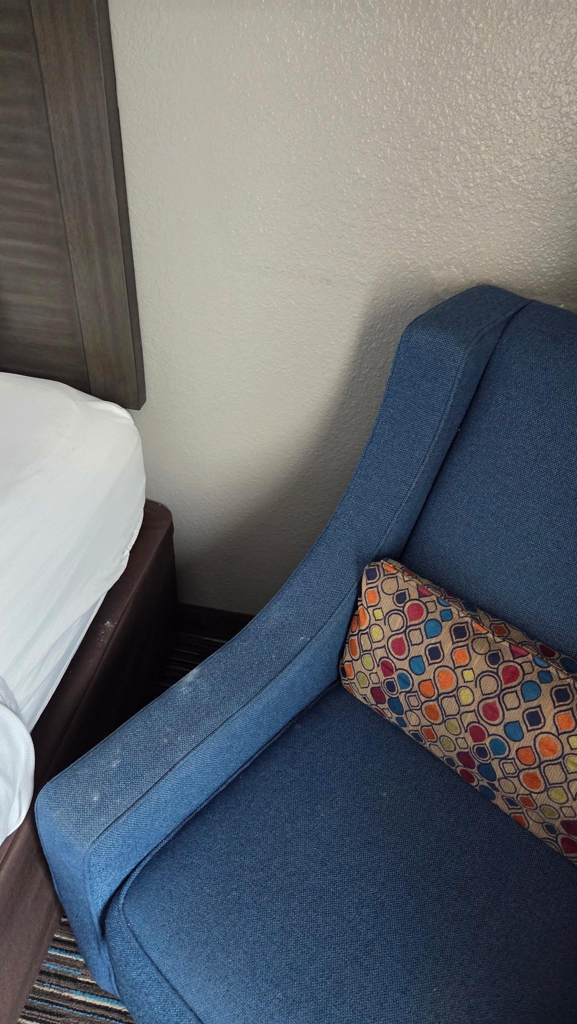 Front desk person at arrival didn’t really make an effort to greet or get out of his chair. Minimal interaction and pointed at the screen to sign and pay the fee for what we are guessing incidental deposit. Room was ok, definitely not worth $275, bathtub had cracks all over the floor, incomplete patching on walls, and you could hear people coming in and out of rooms. Parking was a bit tight.