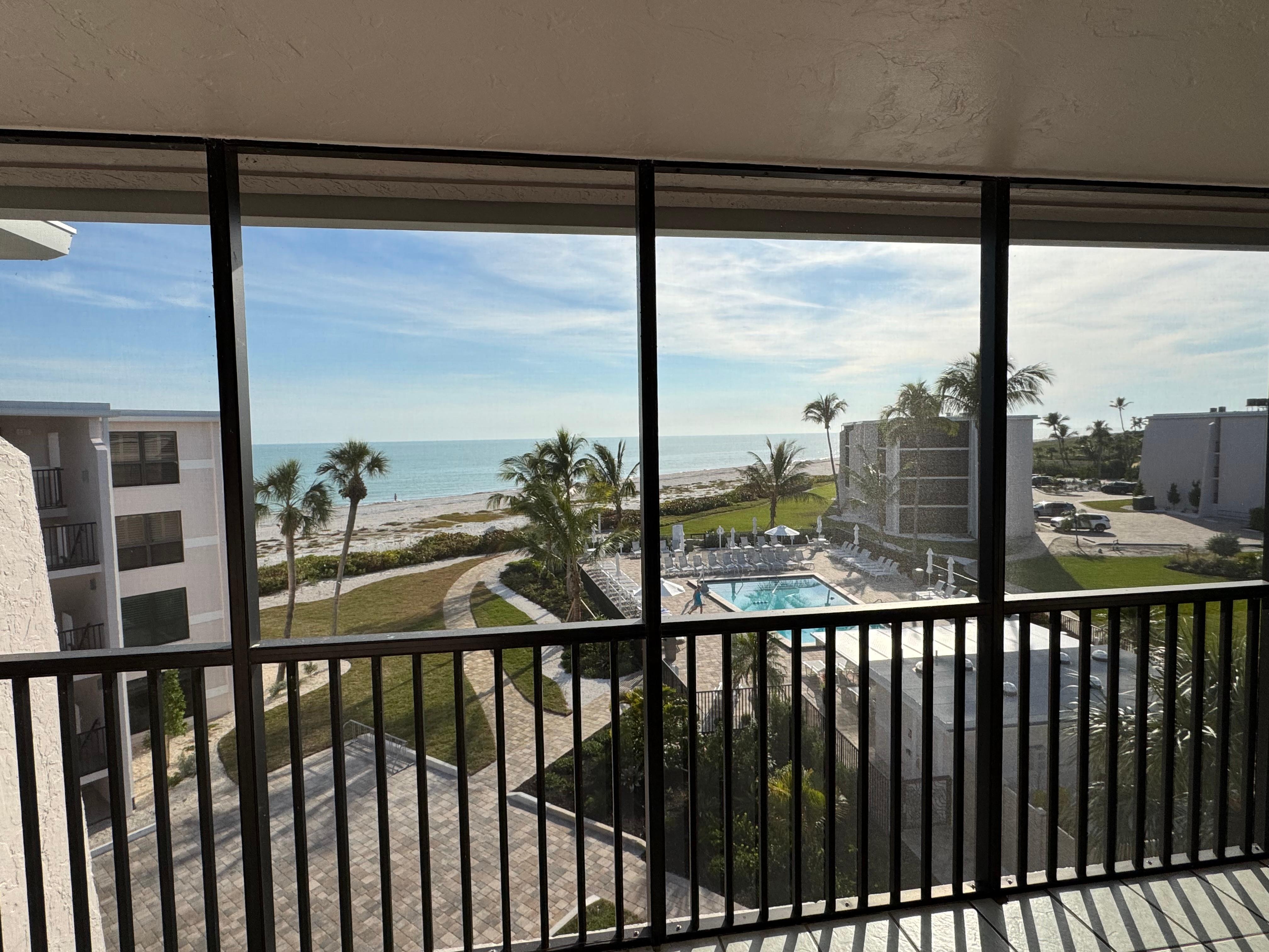 Our 2-bedroom condo--Sundial F401 has beachfront views complete with sliding glass doors that open full width of the living room to allow for sea breezes and sounds the surf. Weekly Sat. to Sat. except in value season, we can offer shorter stays, but weekly is best value. We offer a large screened wrap around balcony with furnishings. Our condo has been professional designed with upscale kitchen and baths. Flooring is ceramic tile throughout (no carpeting). Our condo sleeps 6 (king bed, two queens in guest room, queen sofa sleeper), is fully equipped, and decorated in tropical colors. Because this is our own vacation home, we furnish some extras--washer/dryer, ceiling fans as well as AC, 3 smart TVs, binoculars, hair dryers in baths, beach chairs, beach towels, beach toys, games, books, starter supplies and bath amenities, etc.