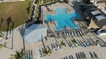 COMPLIMENTARY BEACH SERVICE Beach Service is provided seasonally from March 1st - October 31st, weather permitting, and is only offered during regular business hours until 5pm. This service at this property includes 3 umbrellas and 6 beach chairs!