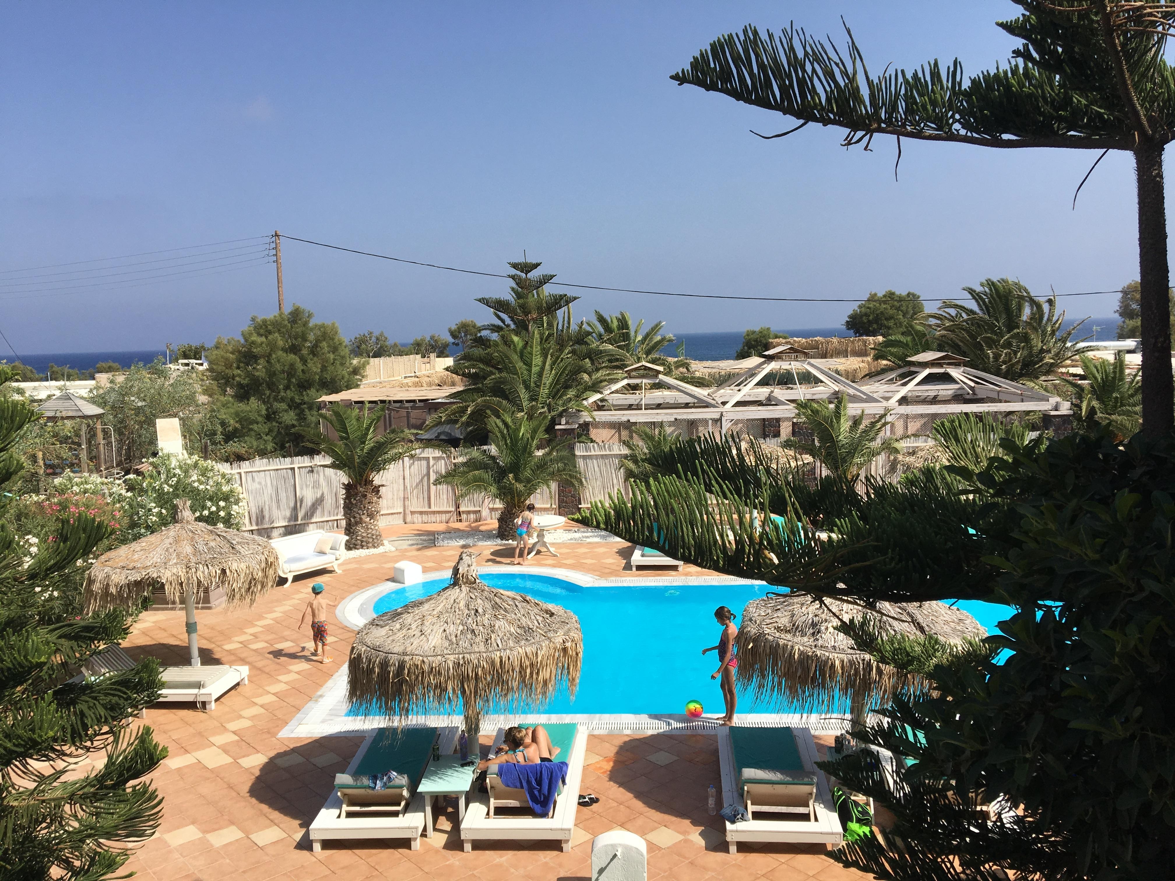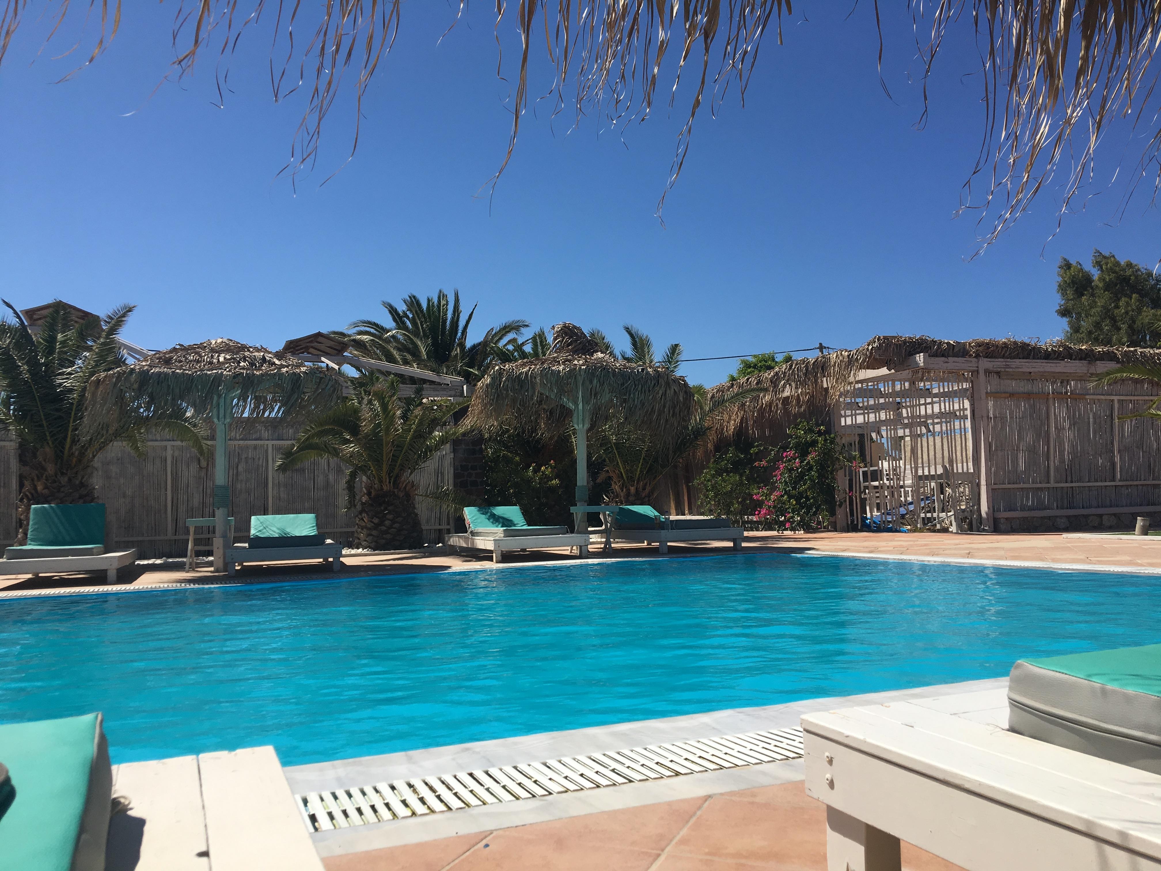Our room was by far the biggest and best of our Santorini stay, with all the amenities we needed and a beautiful view of the pool, sunbeds, and deck area. The cold bottle of water in the fridge — a thoughtful touch from Kostas and team was a lifesaver in the summer heat!