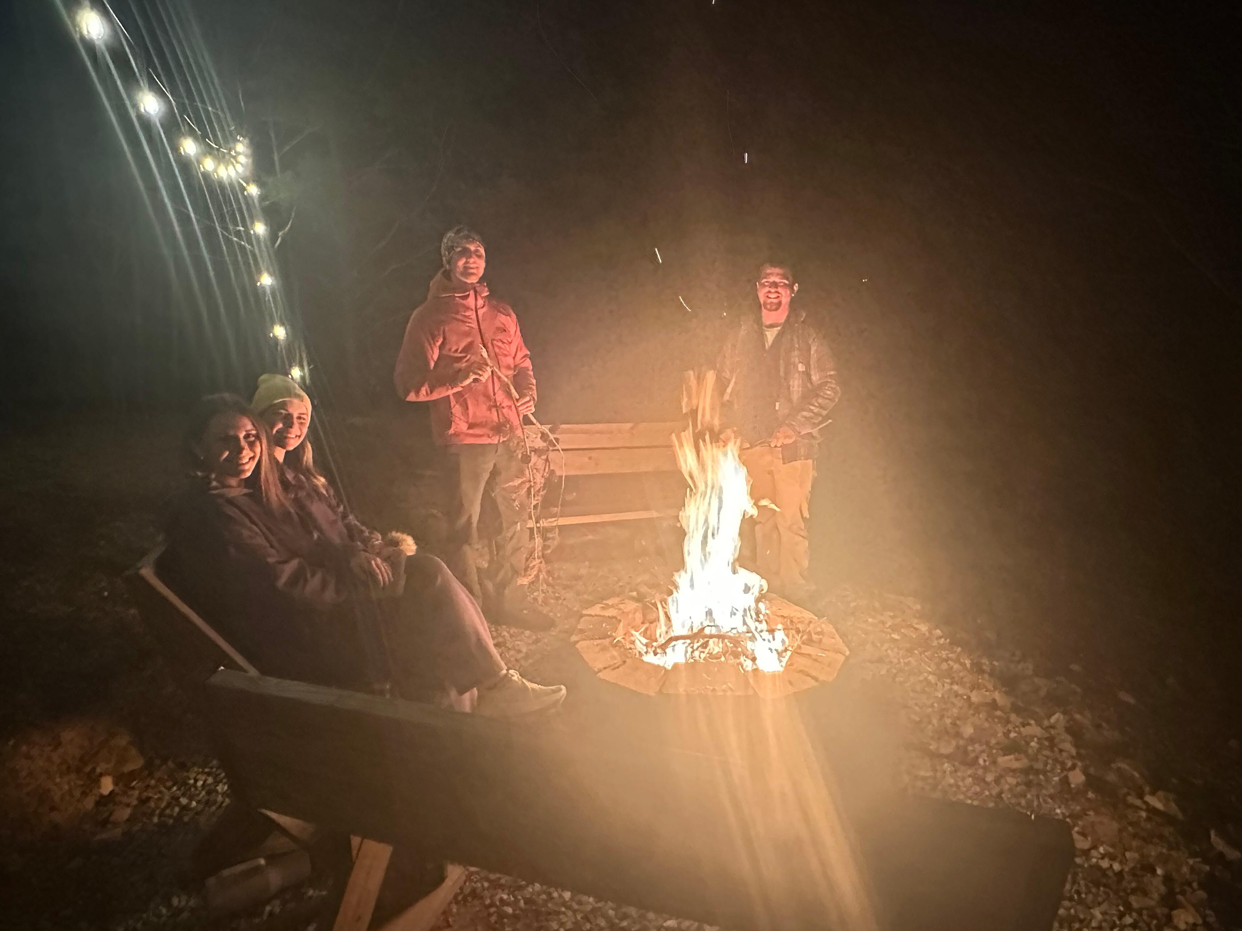 • Fire pit with string lights