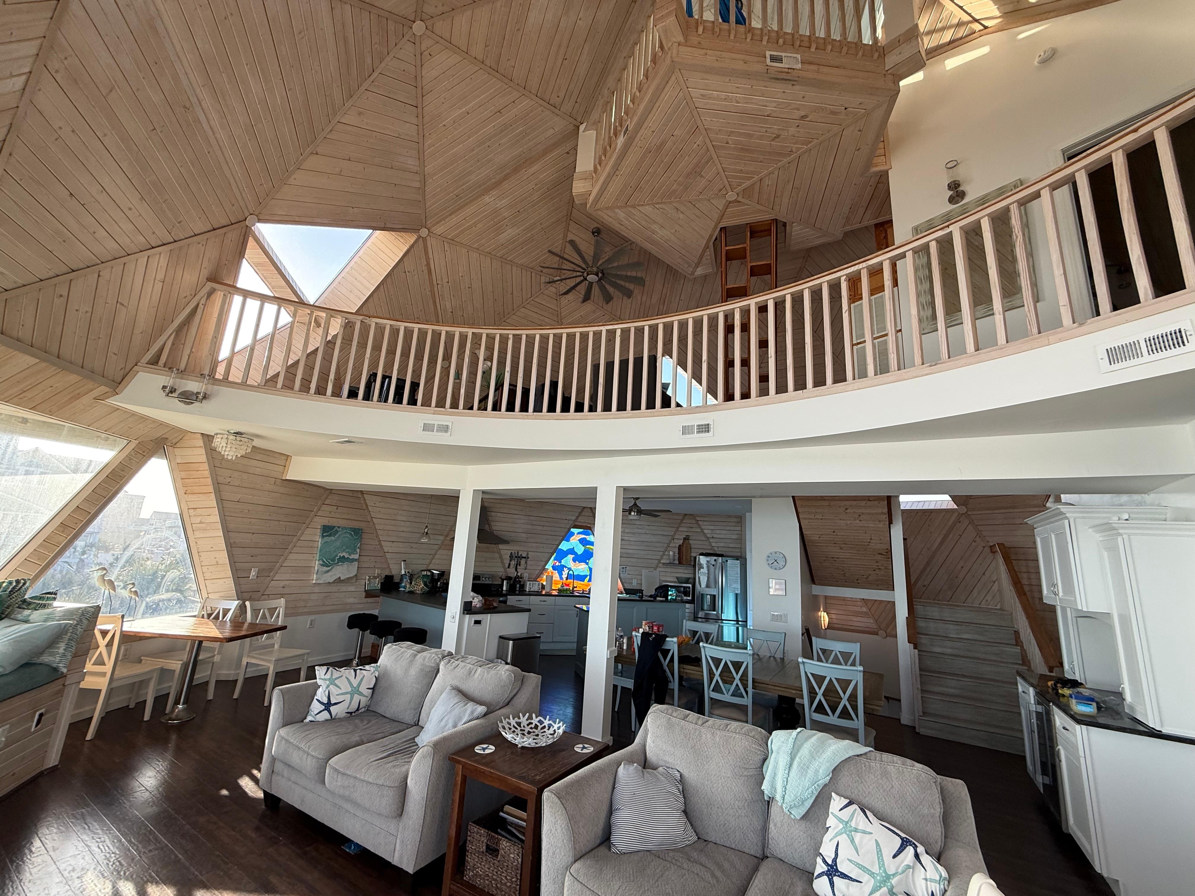 The unique qualities of the incredible dome-style layout also enable nearly every bedroom to be oceanfront. With 4 King bedrooms, 1 Queen, and a Bunkroom with 2 sets of bunk beds that sleeps 6, this house has plenty of space for everyone in your group. At the end of a day spent under the sun, settle into your crisp sheets and turn on your favorite movie in any bedroom – each one has its own Smart TV. Or head up to the 4th-floor indoor crow’s nest to relax in a hammock and check out the stars!