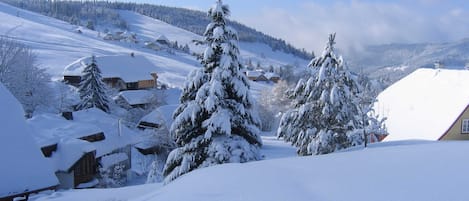 The holiday apartment Ferienwohnung Todtnauberg is located in Todtnau and boasts direct access to the ski slopes. The 60 mÂČ property consists of a living room with a sofa bed for one person, a kitchen, 1 bedroom and 1 bathroom and can therefore accommodate 5 people. This accommodation does not offer: Wi-Fi and towels. This vacation rental features a private covered terrace for relaxing evenings.