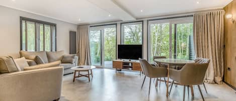 Living area: With Smart TV and double futon bed (for flexible sleeping arrangements).