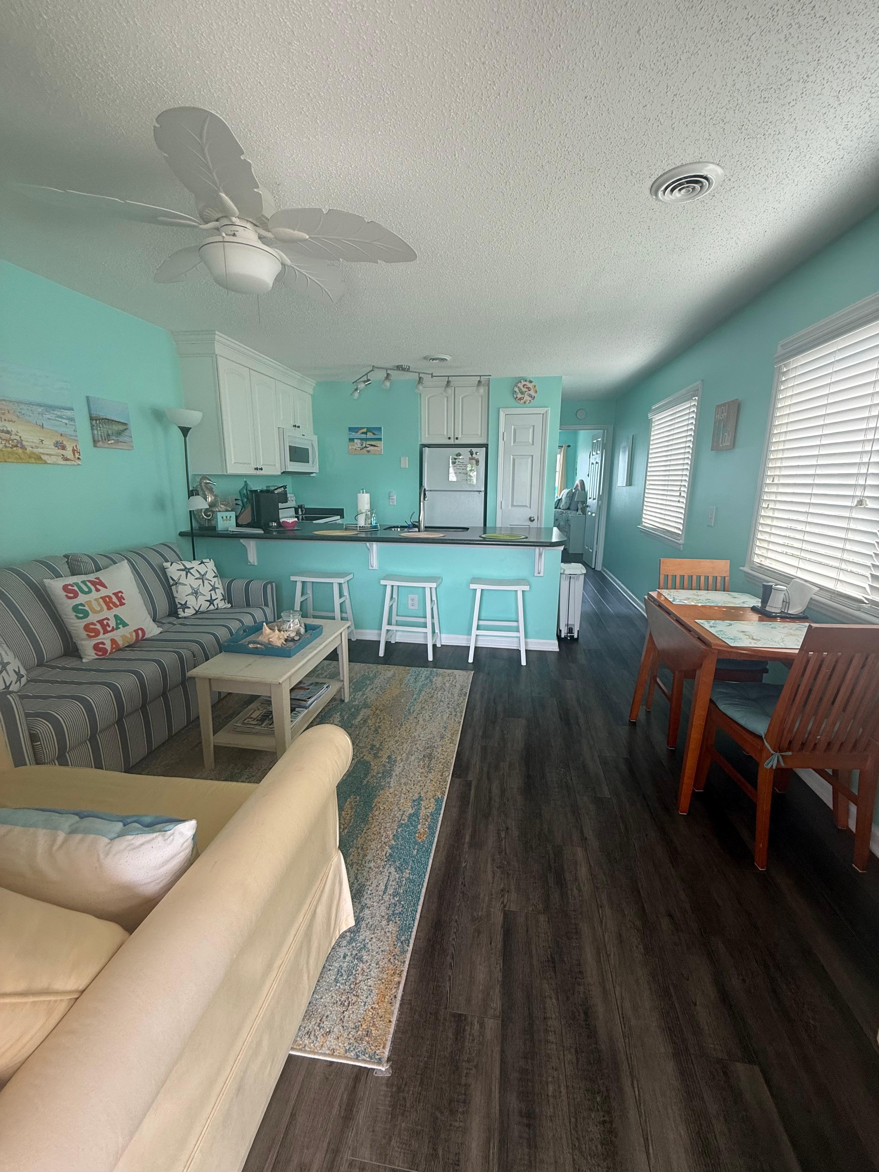 My husband booked a last minute staycation for a solo getaway for me, and I had a nice stay overall. The condo is clean, cozy, and in a great location, literally just across the street from the beach. The ocean view was lovely, and parking was easy, especially in the off season. It felt like a great spot for the price.The owners were quick to respond and easy to communicate with, which I really appreciated. They were also kind enough to allow a slightly early check in and checkout when possible, and were quick to offer troubleshooting and solutions to any issues that came up.A few things to note that wouldn’t deter me from booking again, but may be helpful to keep in mind. The bed wasn’t as comfortable as I anticipated, so it didn’t quite have that fully relaxing, sink-into-it vacation feel. Like many condos, you can hear some movement from the unit above at times. It really comes down to the luck of the draw with neighbors, which is no reflection on the property or the owners.Overall, a good option if you’re looking for something simple and close to the north end of Carolina Beach. As a solo traveler without kiddos looking for a quiet getaway, it wasn’t quite as restful as I’d hoped, but it could be a great fit depending on what kind of stay you’re looking for.