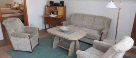 ïżœïżœïżœïżœïżœïżœïżœïżœïżœïżœïżœïżœïżœïżœïżœïżœïżœïżœïżœïżœïżœïżœïżœ 2-room apartment (72 sqm) in the 1st. 1st floor with south / west-facing balcony, ‱ 1 bedroom with double bed, ‱ 1 living room with sofa and dining area, ‱ 1 separate kitchen, ‱ 1 shower room, ‱ Flat screen TV with cable / satellite TV, WLAN, ‱ Seating in the garden, 2 rental bikes