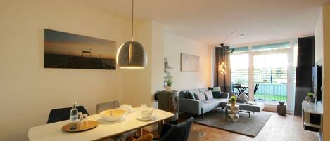 Geschmackvolles Ostseeapartment mit GroĂem Balkon, Whirlbadewanne und Kaminofen